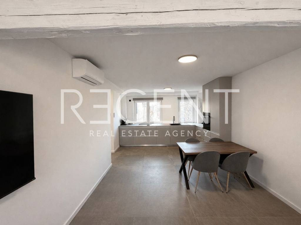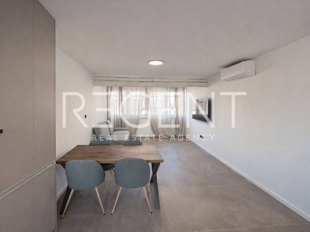 A completely renovated and furnished three-room apartment of 64 m² is for rent, located on the fifth floor of a building. The building currently does not have an elevator, but its installation is planned during this year. The apartment has two bedrooms, a living room with a kitchen, two bathrooms, and a storage room in the basement. The apartment also comes with a parking space in the building's courtyard. It is located near the tram zone, with excellent connectivity and all important amenities in the immediate vicinity, which makes it a practical choice for a comfortable city life. Pets are allowed.