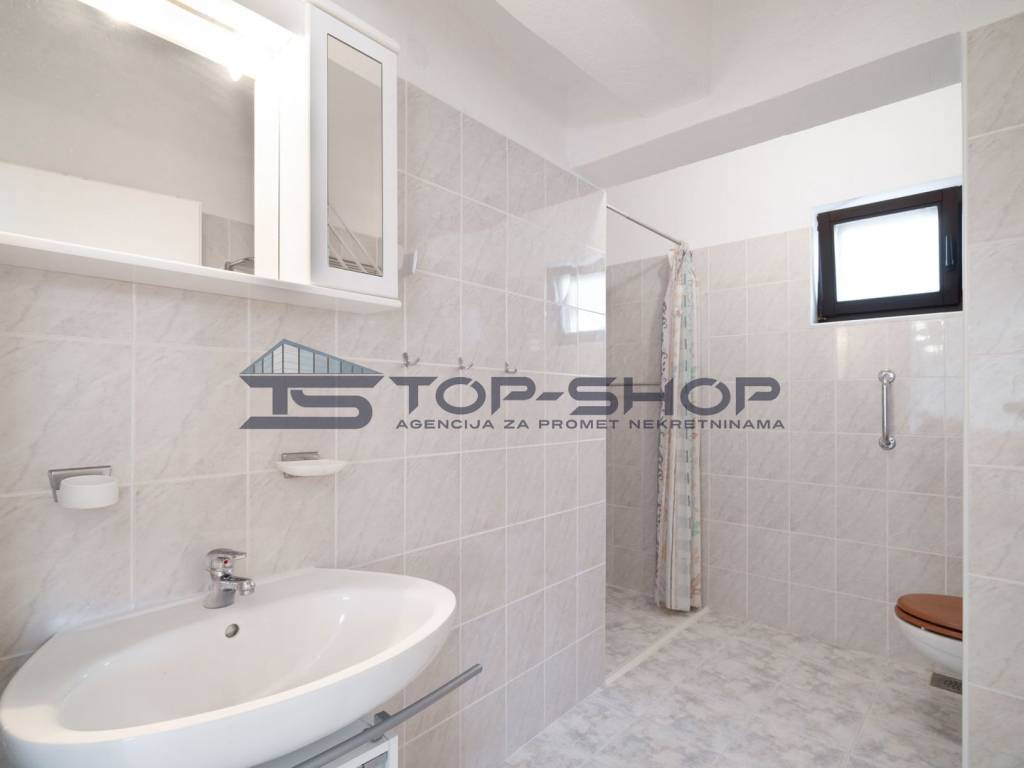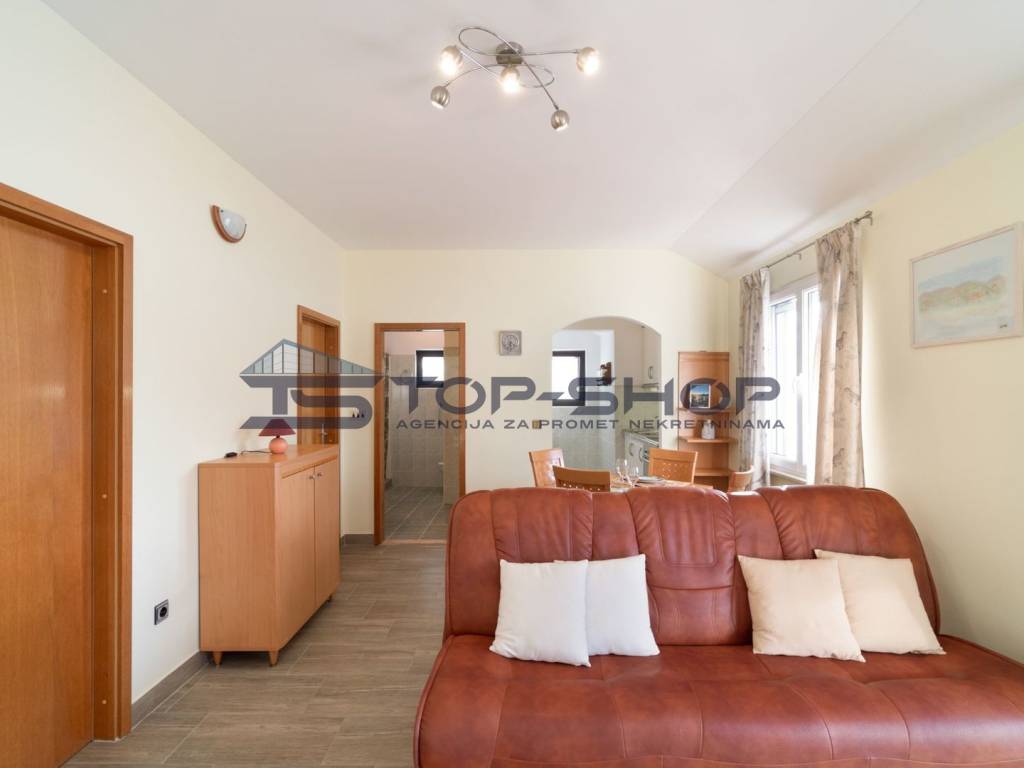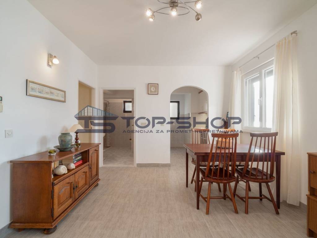 U kući se nalaze 3 odvojena apartmana pa je idealna kao baza za veću obitelj ili za turističko iznajmljivanje. Nalazi se na parceli od 388 m2, a ukupna korisna površina kuće je 274 m2. Pristup kući je sa ulice koja vodi iza kuće. Direktno s ulice dostupna je garaža za 2 automobila i jedno natkriveno parkirno mjesto. Dvorište uz ulicu pruža ugodno sjedenje u hladu. Oko kuće se dolazi stubištem te do uređenog vrta s puno mediteranskog bilja koji okružuje kuću s dvije strane. Ispred kuće nalazi se glavni natkriveni prostor za sjedenje s vanjskim kaminom, kao i vrata koja vode direktno na plažu.