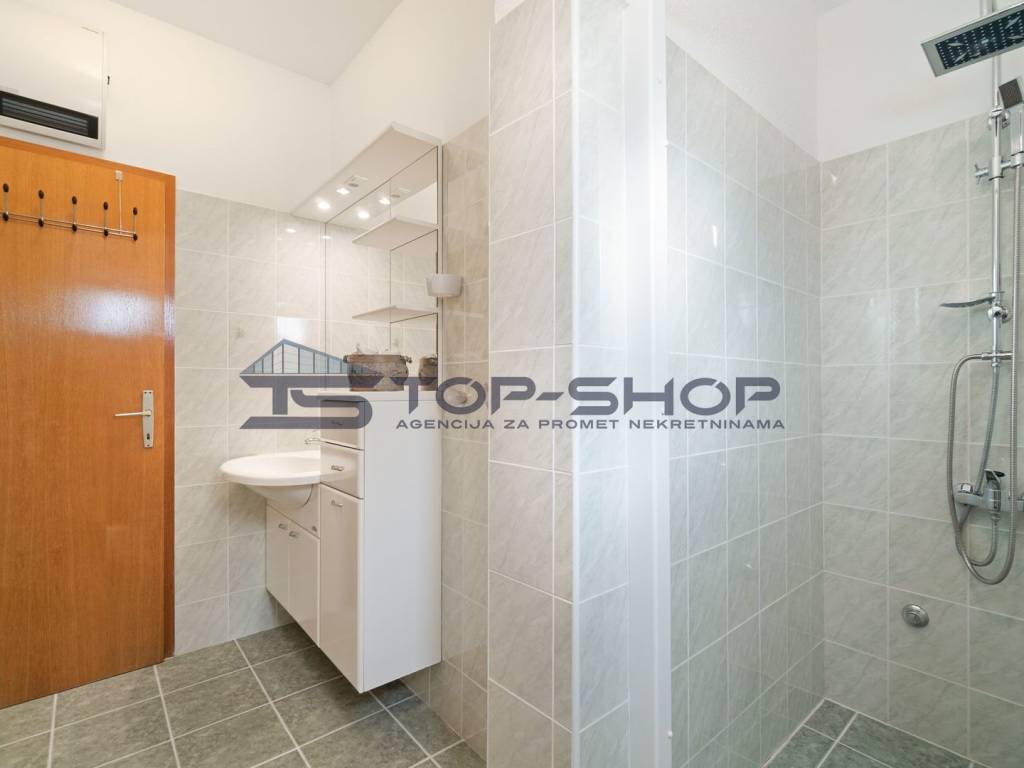 Svaki stan ima poseban ulaz. U suterenu kuće nalazi se manji stan koji se sastoji od ulaznog hodnika, kuhinje s dnevnim boravkom, kupaonice i male sobe. U podrumu se nalazi i mala ostava, au prostoru ispod garaže radionica. Vanjske stepenice vode u prizemlje gdje se nalazi dvosobni stan sa velikom terasom i pogledom na more i vrt. Na prvom katu nalazi se mala terasa za doručak i ulaz u treći apartman. Sastoji se od prostranog dnevnog boravka iz kojeg se izlazi na veliku terasu s prekrasnim otvorenim pogledom na more i obalu. Iz dnevnog boravka također se izlazi na kuhinju, kupaonicu s tušem i dvije spavaće sobe s balkonima, orijentirane na jugoistok. Na krovu garaže nalazi se još jedna prostrana terasa s koje se pruža pogled na more i može poslužiti kao dodatni prostor za opuštanje. Kuća je izgrađena 1988. godine, a proširena i renovirana 2002. godine.