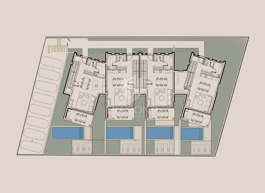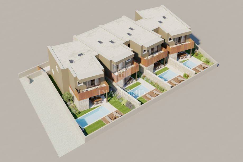 In a peaceful area near Rovinj, just five kilometers from the sea, there is this elegant terraced house that combines the charm of traditional Istrian architecture with the comfort of modern living. Carefully selected materials – Istrian stone dry walling, warm corten steel surfaces, and top-quality WICONA aluminum joinery – give it a distinctive character and lasting value.