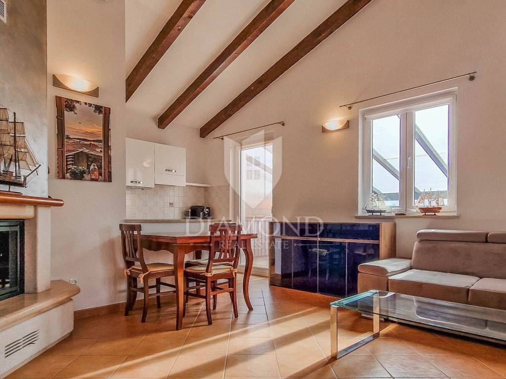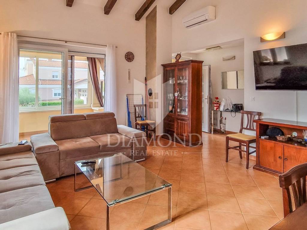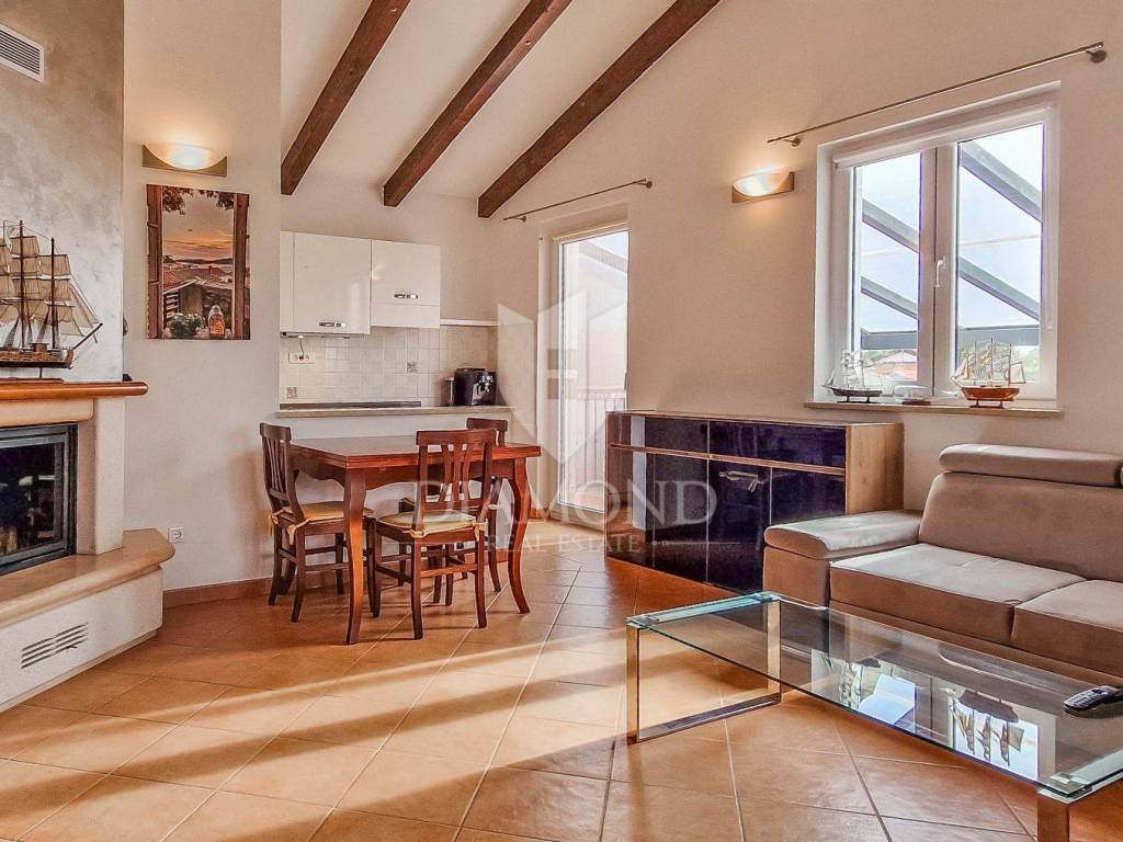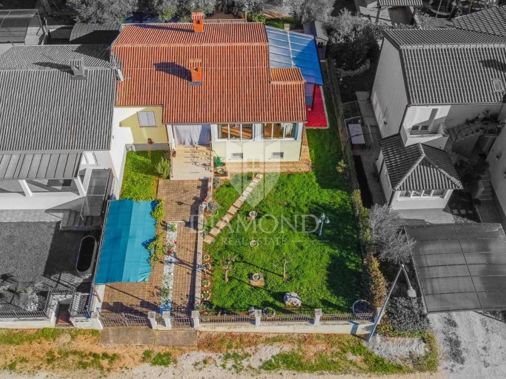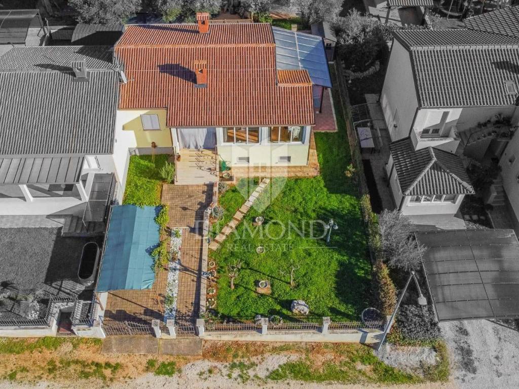 Istria, Poreč, surroundings Attractive semi-detached house for sale, high ground floor house in the vicinity of Poreč with sea view. The house consists of 2 bedrooms, 2 bathrooms and a spacious living room. Heating is provided by air conditioning and central heating with wood. In the basement there is an additional residential unit - a studio with a kitchen and a fireplace, ideal for guests or rental. The house has its own parking lot, yard and garden house. The house is an opportunity due to its exceptional location.