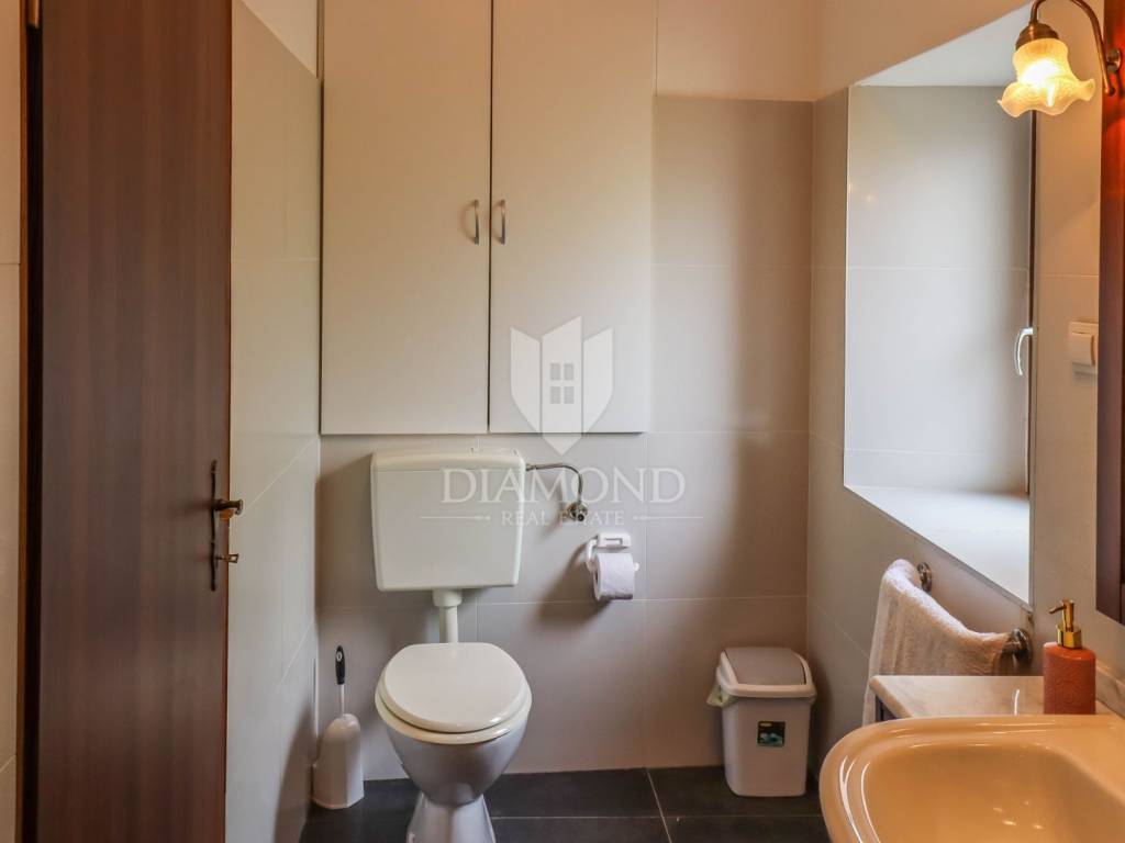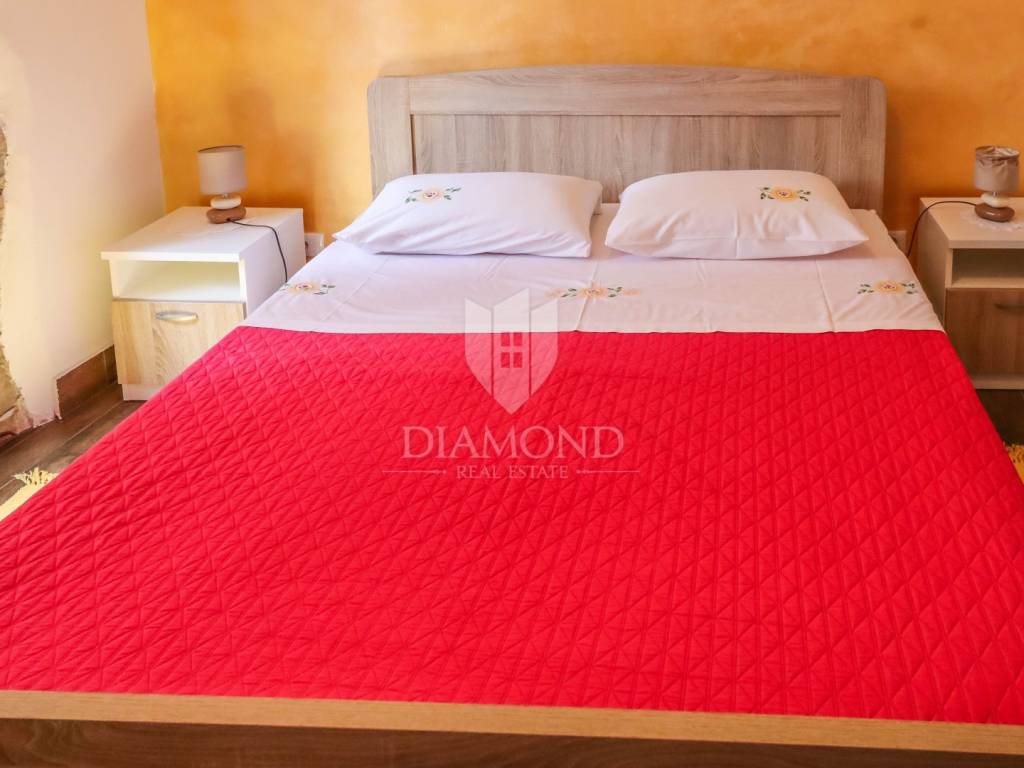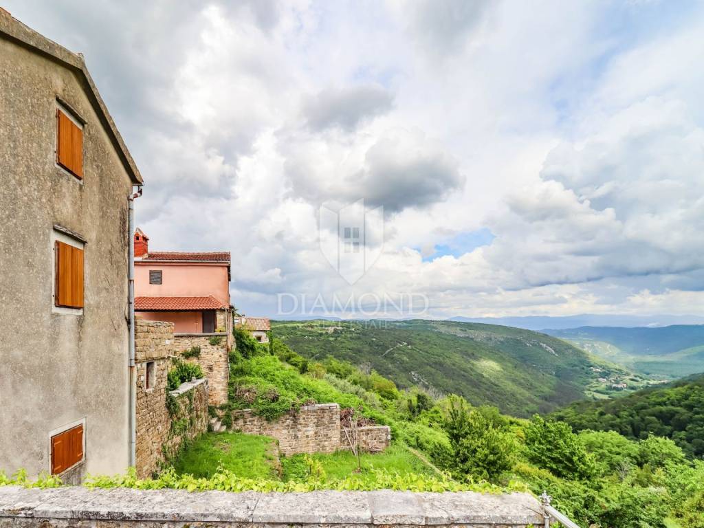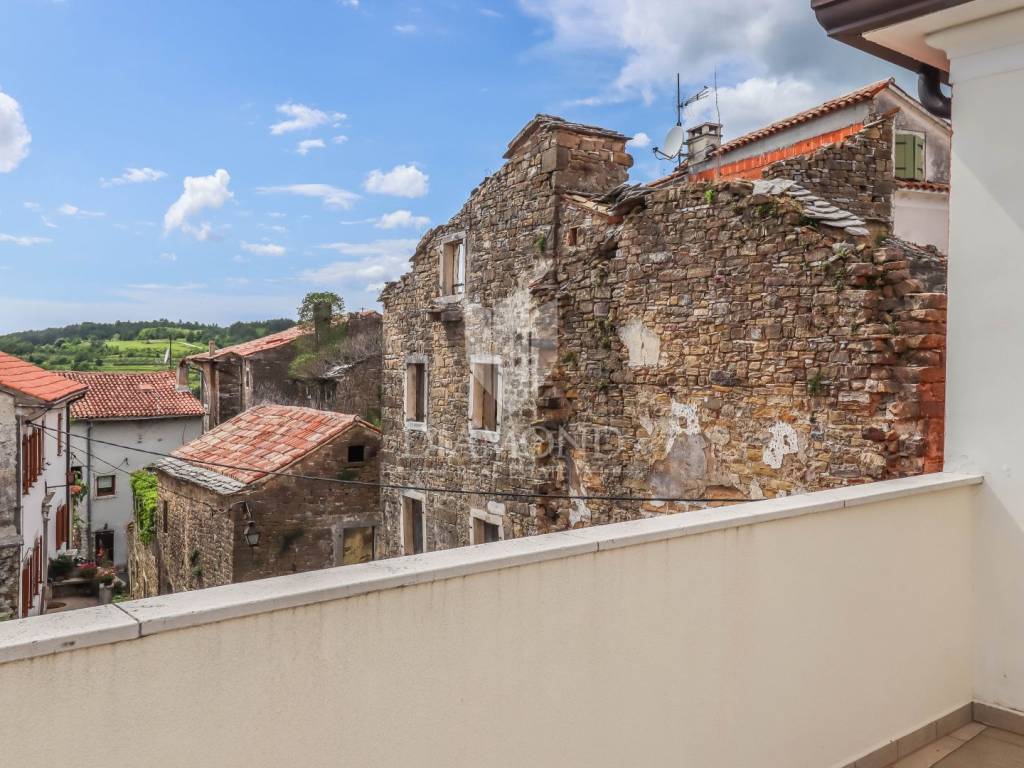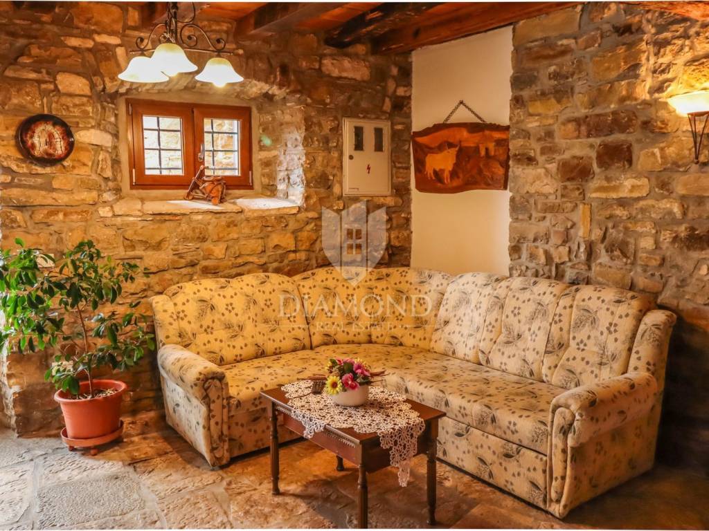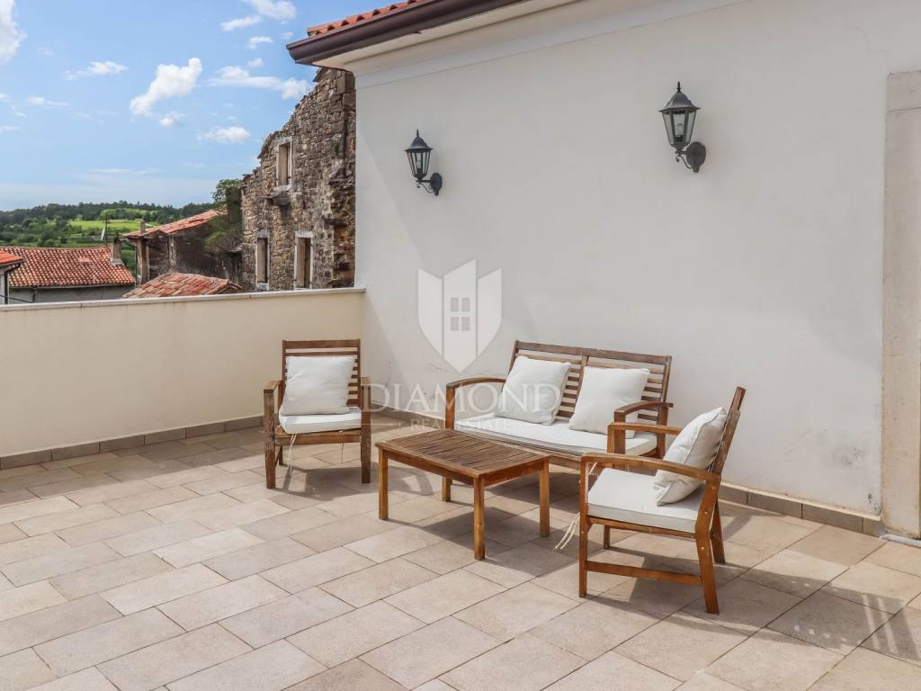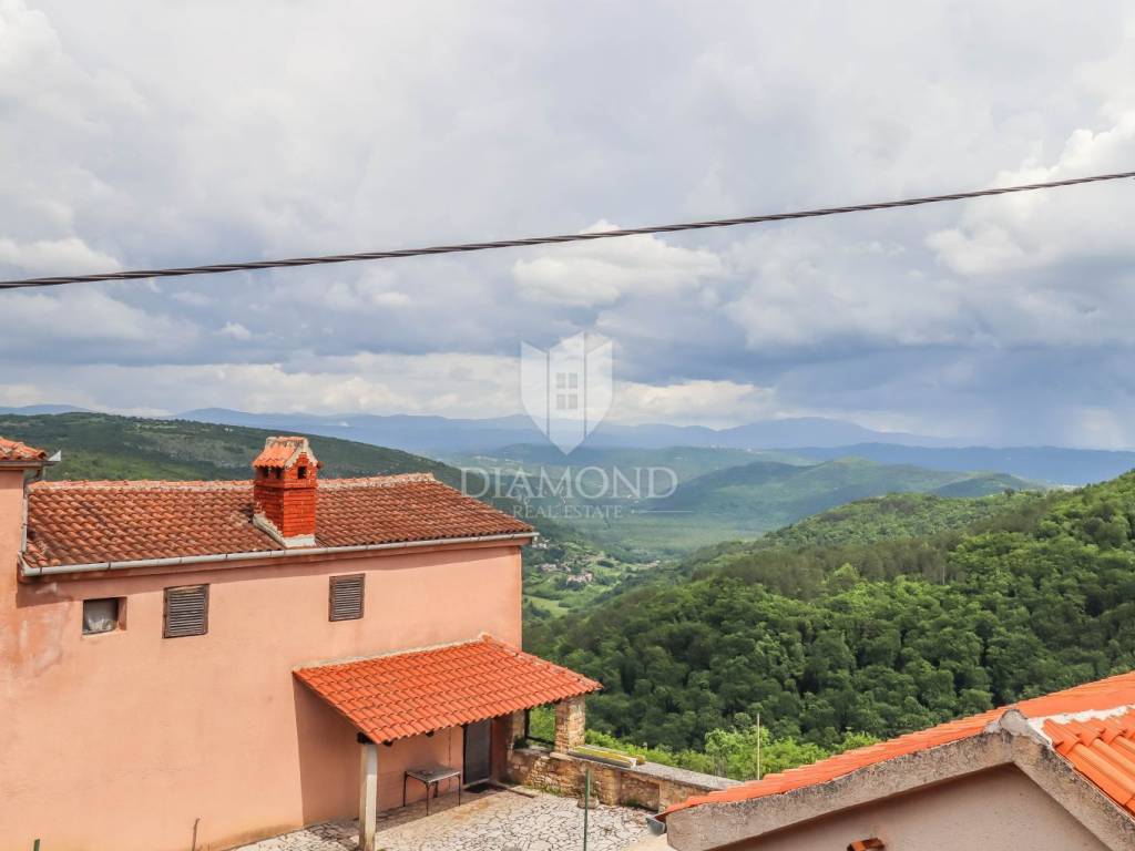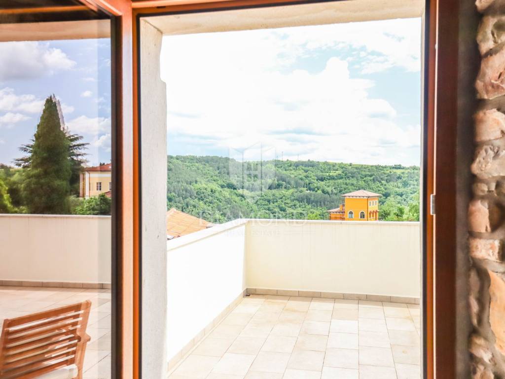 Istria, Buje, Surroundings A beautiful villa with a swimming pool and an unforgettable view of the Mirna river valley is for sale. It is located in a small and quiet settlement in the Istrian hills. Our villa consists of 3 bedrooms, a dining room with a living room, a kitchen, a terrace, 2 storage rooms, 1 toilet and a swimming pool with a sunbathing area. On the ground floor there is a kitchen from which we have an exit to the garden where there is a canopy with a large table and chairs, from the kitchen we take internal stairs to the dining room with a living room and a fireplace that gives us a pleasant feeling on cold days. On the first floor there is an entrance hall from which you enter two bedrooms with their own bathrooms, internal stairs lead to the second floor where there is one large room with a bathroom and a terrace of 16 m2 with a beautiful view of the Mirna Valley. The villa has a garden of approximately 250 m2 with its own pool of 24 m2, next to the pool there is a sun deck with deck chairs that provide the owners with a pleasant rest by the pool. Heating is by air conditioning and a wood-burning fireplace, and cooling is by air conditioning. The house was completely renovated in 2013 and there are no additional investments. The new owners can engage in tourist rentals in the summer season, the villa is already categorized and fulfills all the conditions for rent, the property is an opportunity for clients who are looking for a house to rent and who wanted to continue renting the property, thereby achieving a faster return on investment. It is located near various facilities, some of which are famous agrotourisms, famous wineries, restaurants, bicycle paths, promenades. The distance to Buje is 17 km, to the sea 30 km, to the border with Slovenia 20 km.