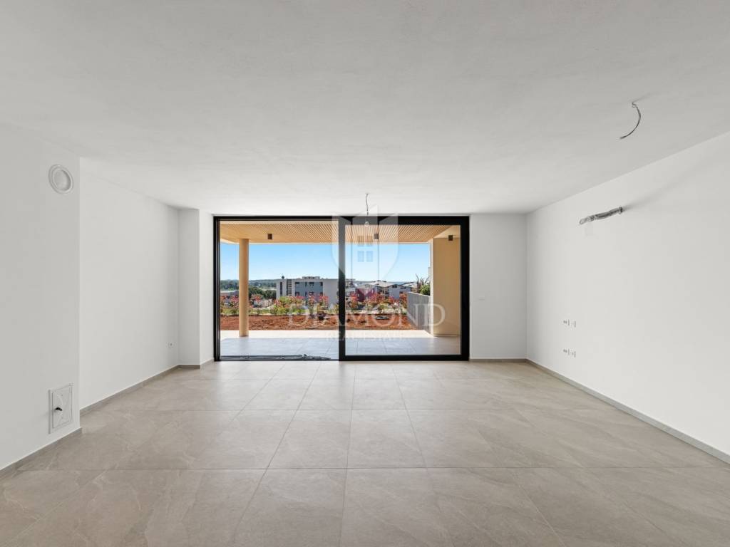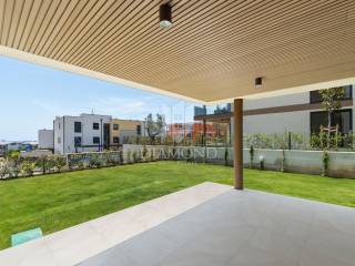 Istria, Novigrad, furnished new building This beautiful apartment in its 112.82 m2 offers a spacious living room consisting of a kitchen, dining room and a comfortable living room, creating the perfect place for socializing and relaxing. In addition, the apartment has two spacious bedrooms, each with its own bathroom for additional privacy and comfort. The living room opens onto a beautiful large covered terrace with a summer kitchen, ideal for enjoying the fresh air and relaxing outdoors. The apartment also boasts a beautiful garden of 180.90 m2, a true paradise for those who love spending time outdoors. The apartment also includes a parking space and additional storage, ensuring comfort and safety for all residents. Underfloor heating, air conditioning in each room for temperature regulation and the highest quality materials make this project special in every way. The apartment is equipped with Italian furniture, TV screens in each room, curtains and complete lighting. This is truly a home that offers everything you need for a comfortable and elegant lifestyle.