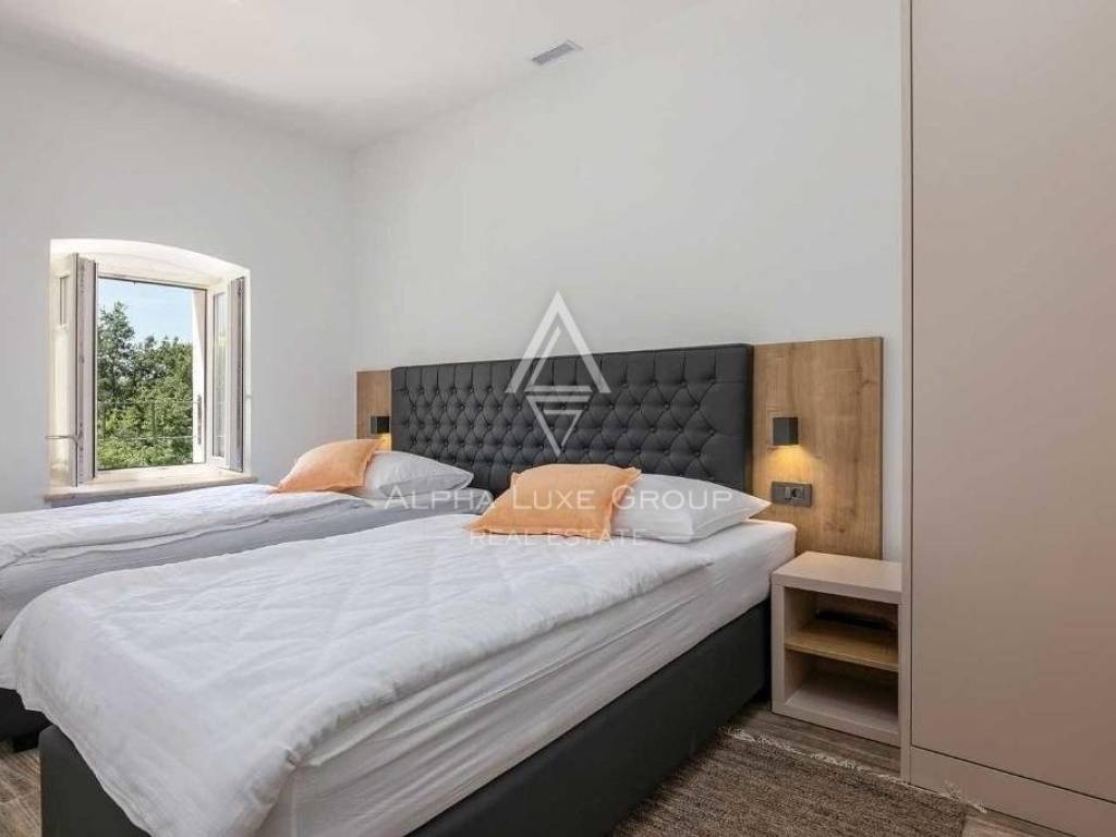 In the smaller stone building, which was completely renovated in 2019, A living room, a kitchen with a dining area, a toilet, and a room with its bathroom comprise the space. Two bedrooms, a bathroom, and a kitchen are all located on the second floor. It is fully air-conditioned and has central heating with oil and solar heating.
