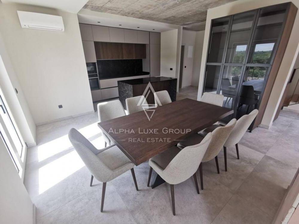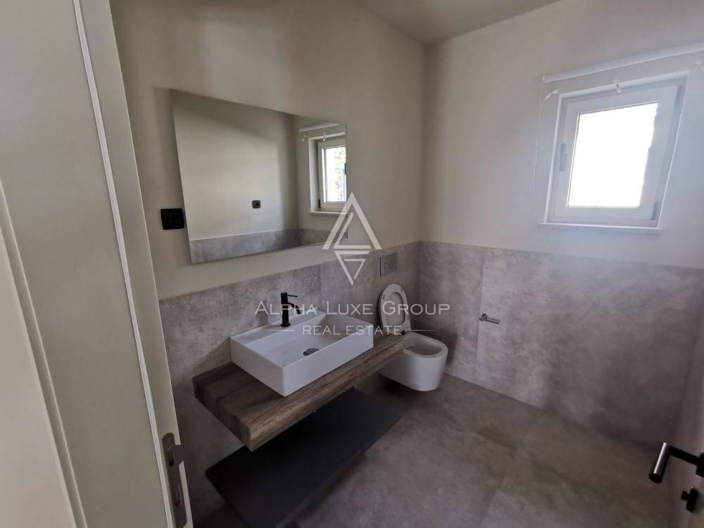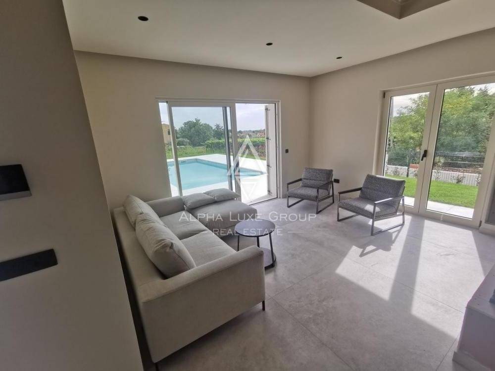 This newly built modern villa is located near Vižinada. It is equipped with attractive Italian furniture, and with three bedrooms, each with its bathroom, it offers guests exceptional comfort. In addition, guests of the villa have an outdoor swimming pool, a covered terrace with seating, a barbecue, a fenced yard with a well-kept garden and lawn, and private parking for several cars.