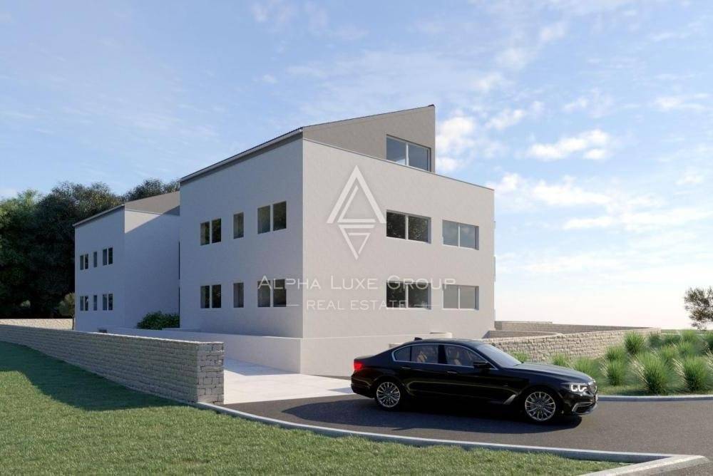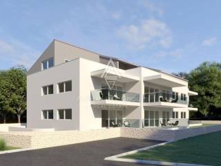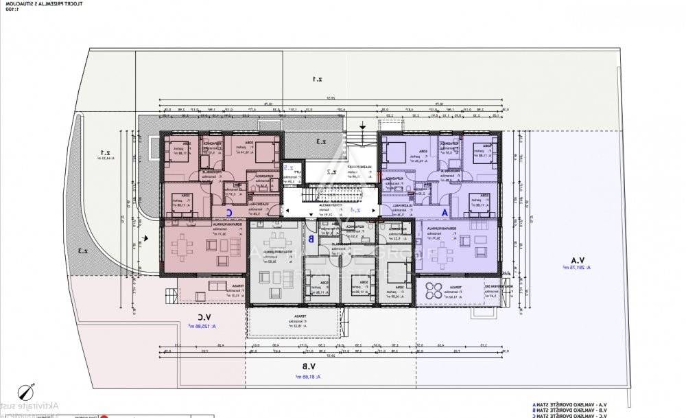 The mentioned building has an apartment with a living area of 182 m2 for sale situated on the first floor, which spans two feet and is connected by an internal staircase. Additionally, there are two parking spots available in the underground garage and a storage area in the basement that comes along with it.