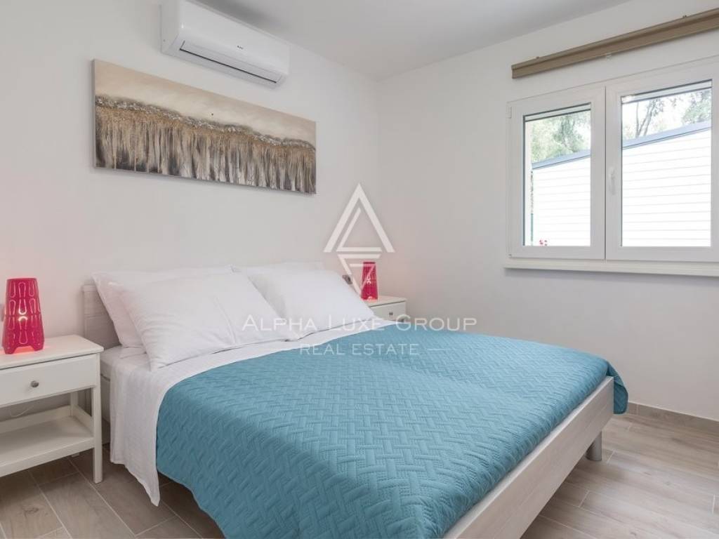 This beautiful simple house is a great opportunity due to its excellent location. It offers all the charms for enjoyment and relaxation near the sea, secluded and surrounded by nature. It is also a good opportunity for family life because of the many facilities for children, the proximity of a pebble beach suitable for children, and the water park located nearby.