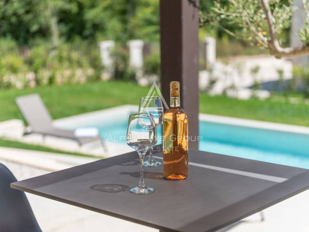 Located in the enchanting town of Višnjan, nestled in the western part of Istria just 12 km from Poreč, this opulent stone villa offers a luxurious retreat amidst the town's historic charm. Elevated at 244 meters above sea level, Višnjan boasts a rich tapestry of cultural and natural beauty, with 56 picturesque settlements enhancing its vibrant tourist appeal. The tranquility of its landscapes ensures a unique, primal enjoyment.
