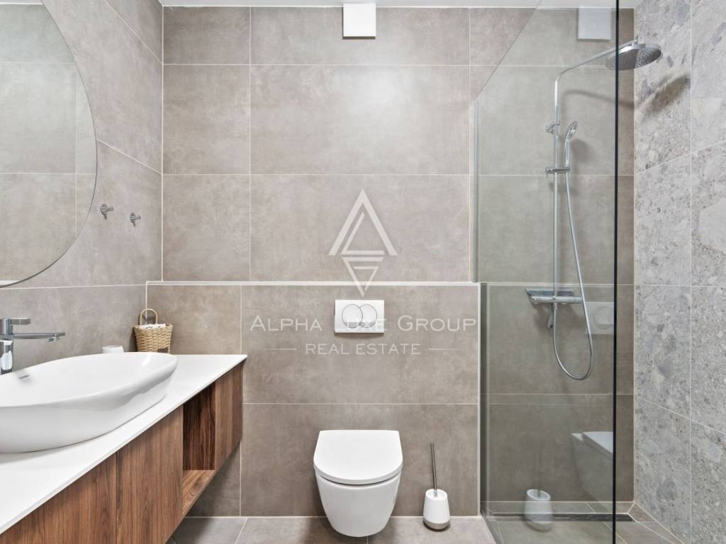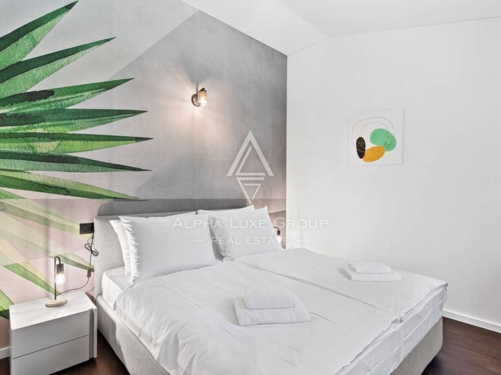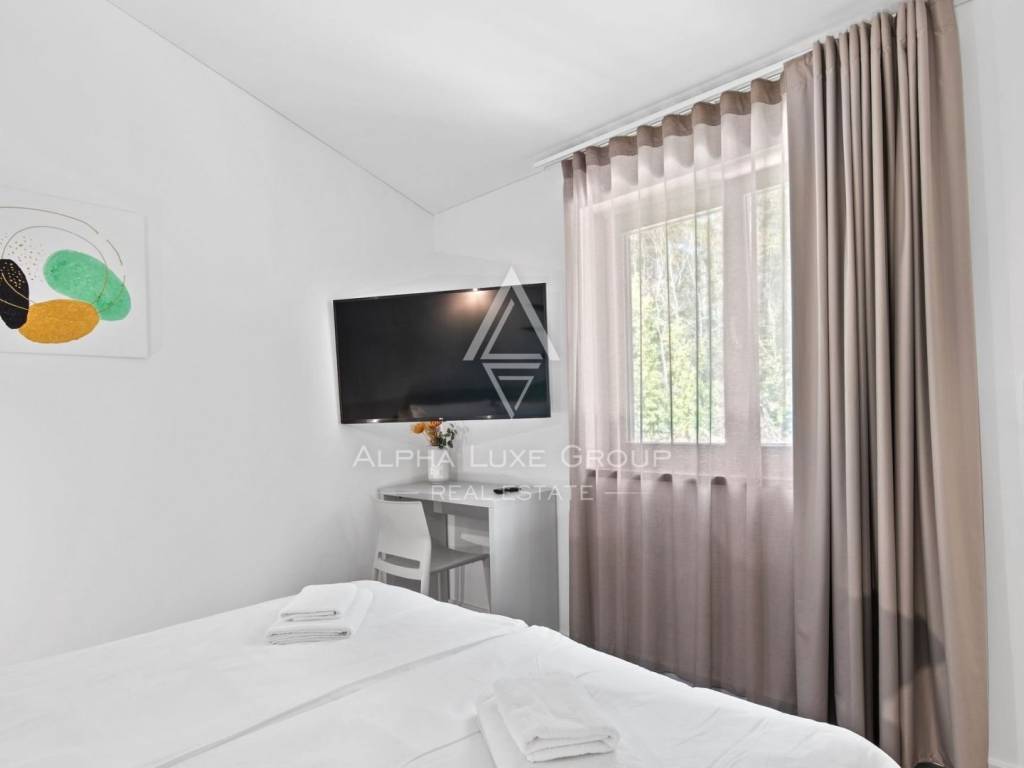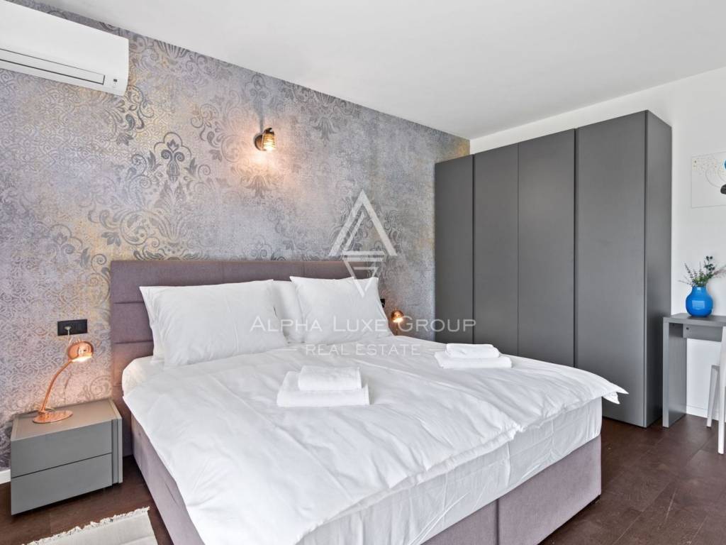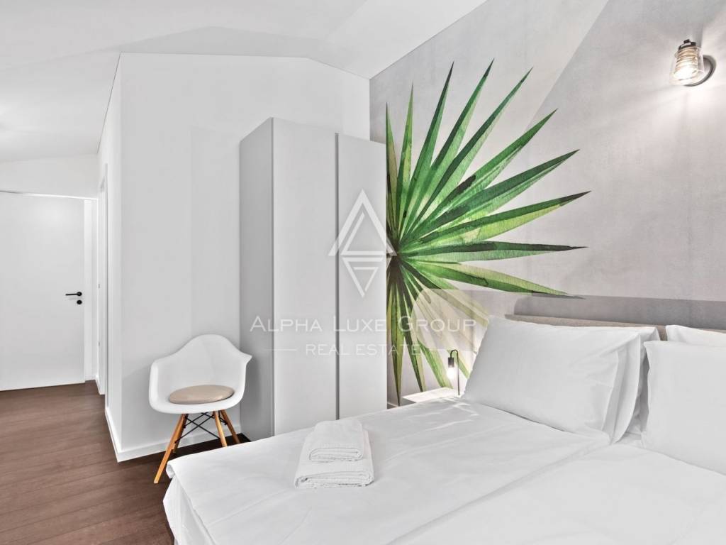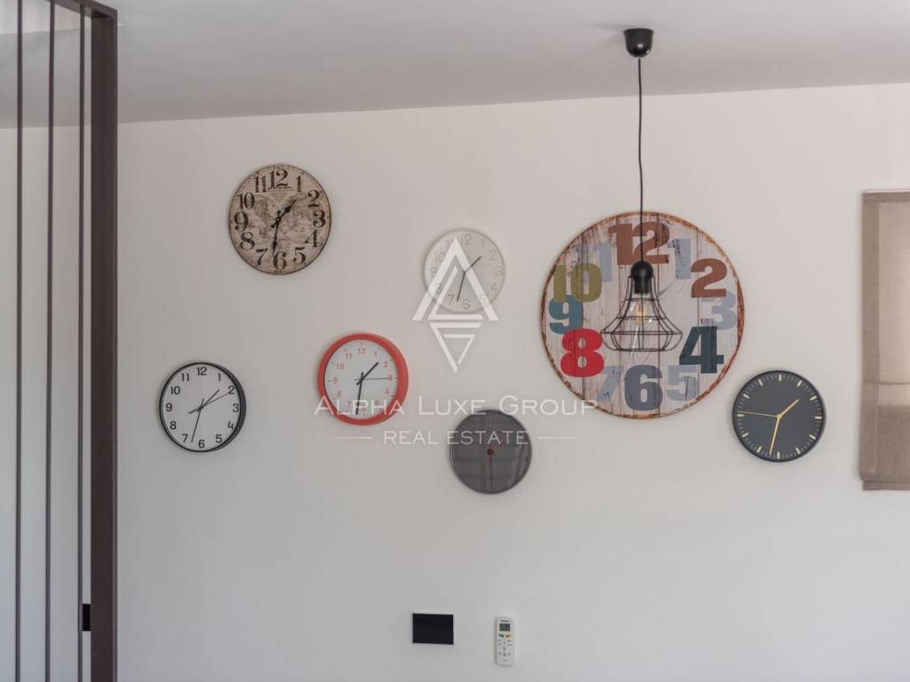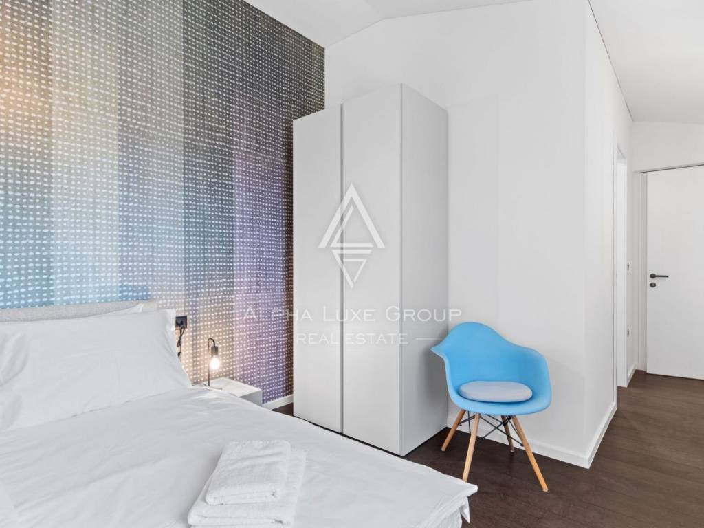 The villa, with its spacious 198 m2 layout, is set in a tranquil rural backdrop, perfect for those seeking peace. It features four elegant bedrooms each accompanied by modern bathrooms, alongside an open-plan living room, kitchen, and dining area that exemplify contemporary living. The construction incorporates high-quality materials, and the residence comes fully furnished and equipped, with underfloor heating and air-conditioned rooms for year-round comfort.