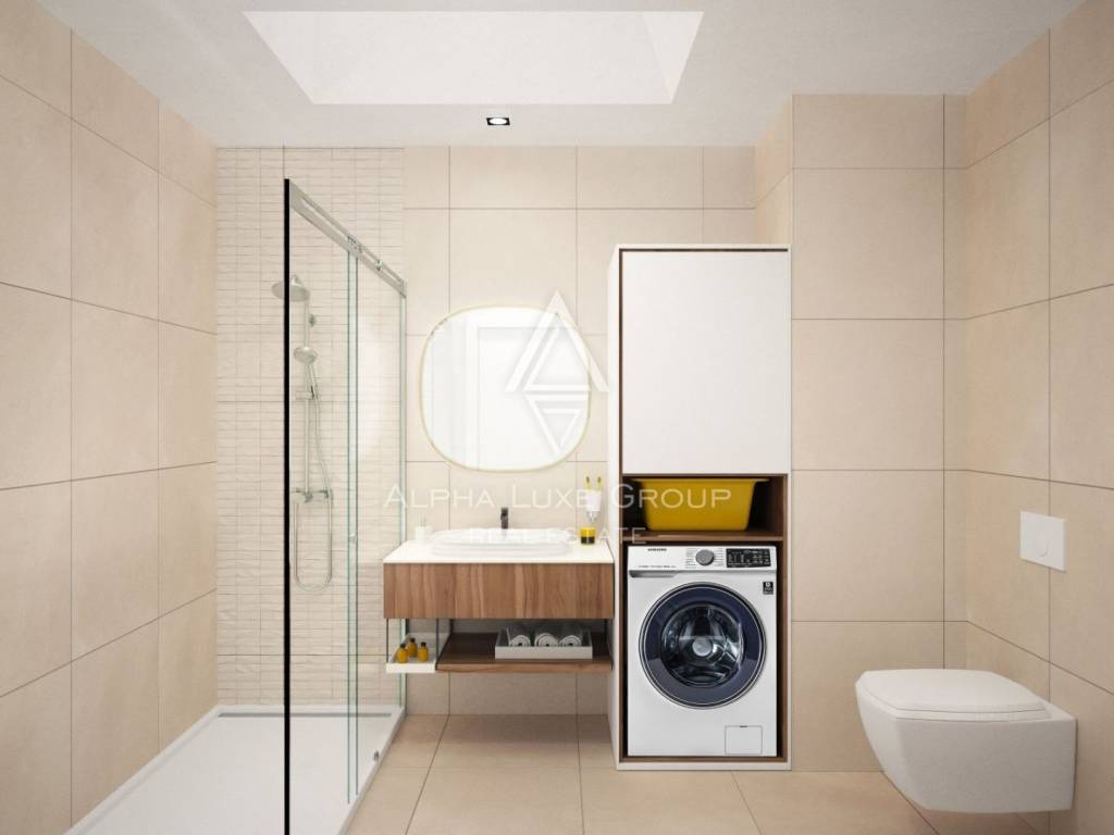 The apartment is equipped with air conditioning for heating and cooling, with underfloor heating in the bathroom for added luxury. A covered parking space is included in front of the building for convenience. The property is ideally situated close to essential amenities such as restaurants, shops, a post office, and a bank. The beautiful beaches of Poreč are just 6 km away. Construction begins in spring, with completion scheduled for October 2025.