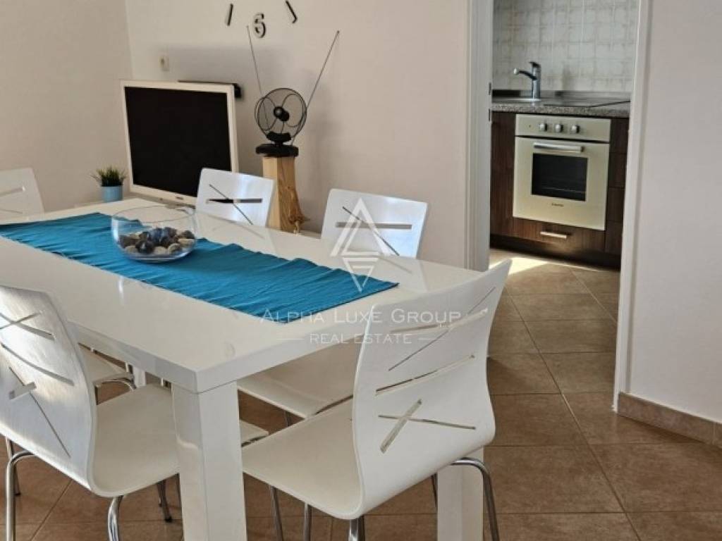 The property is well-maintained, dry, and move-in ready, with all furnishings included. A convenient niche in the hallway outside the apartment provides storage for bicycles and toys. The building is nestled next to a forest in a quiet village, making it an ideal location for those seeking tranquility. The village is accessible via a scenic road through fields and olive groves, 700 m from the main road. Shared parking is available in front of the building, with additional parking along the access road.