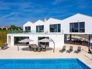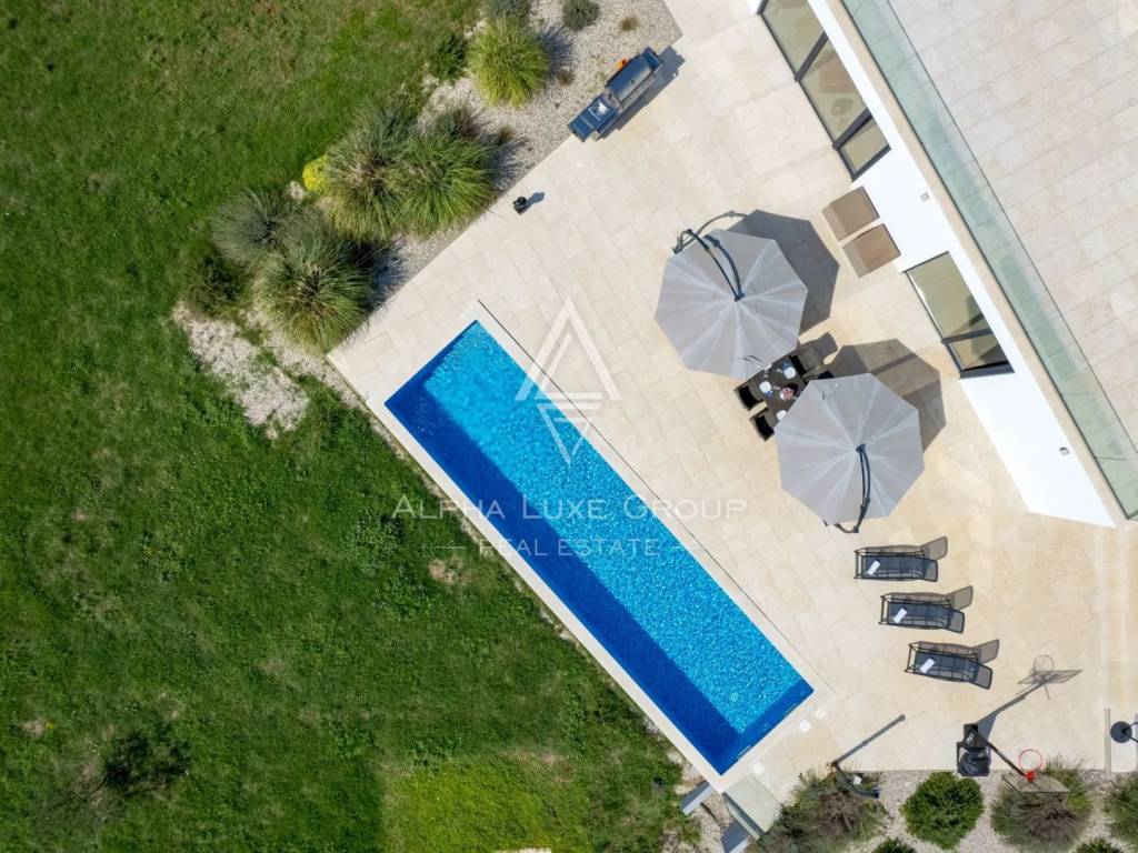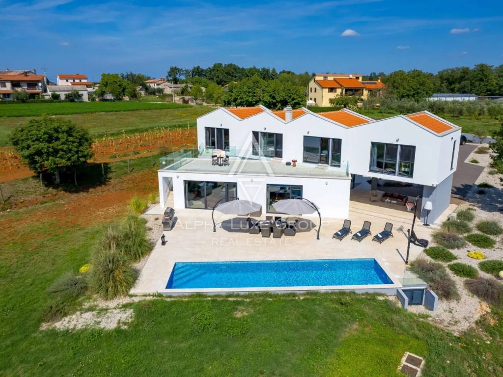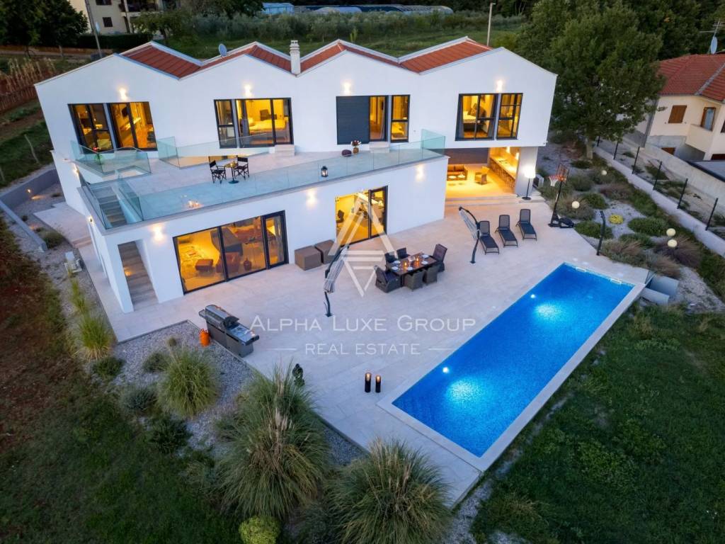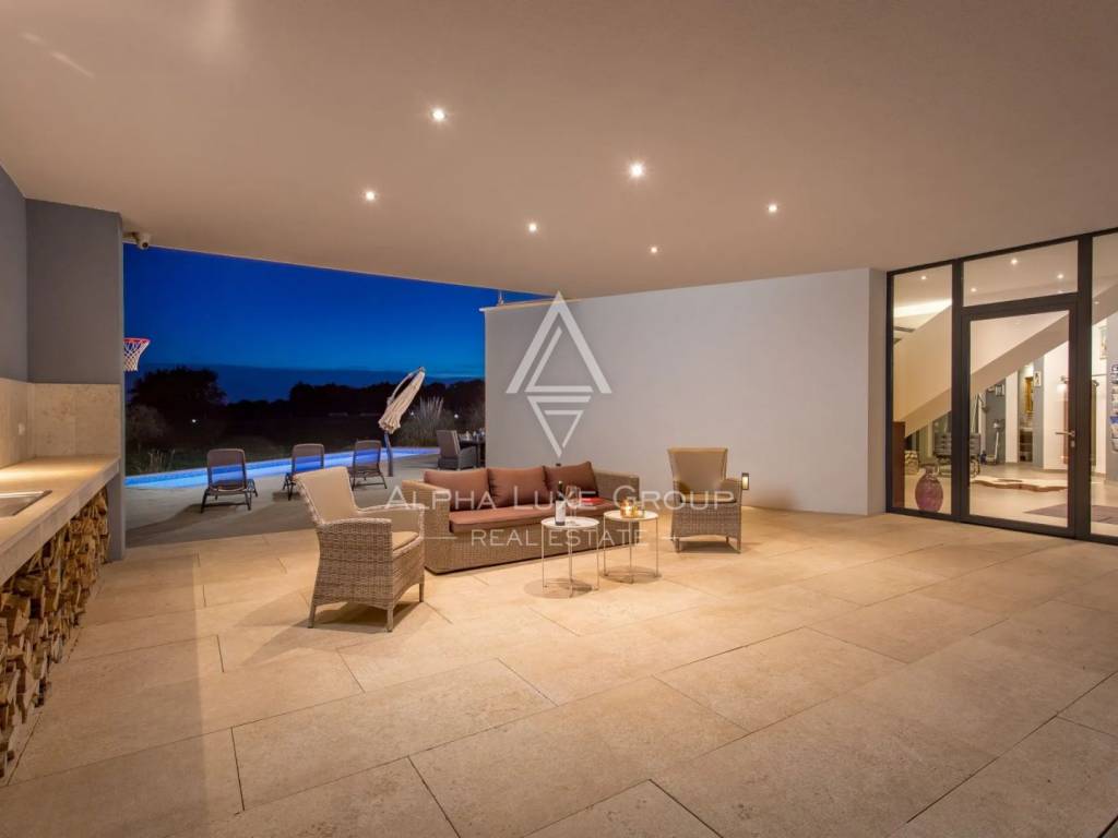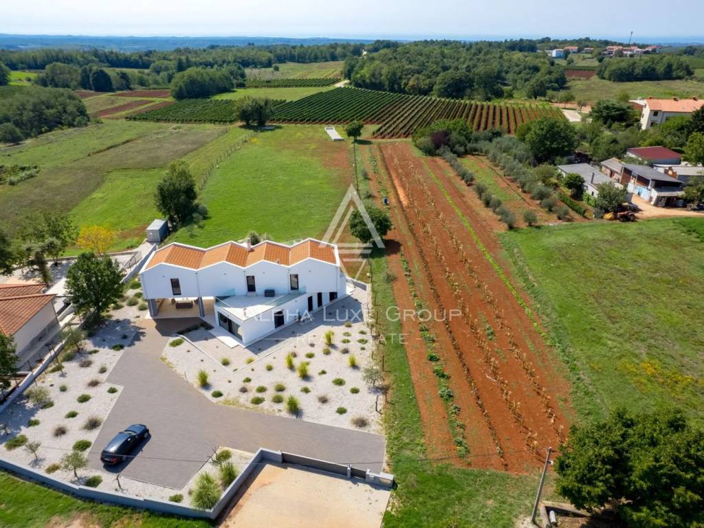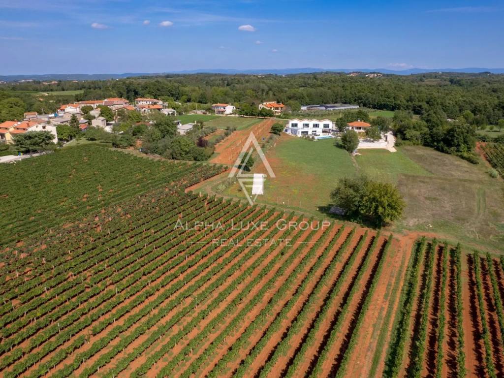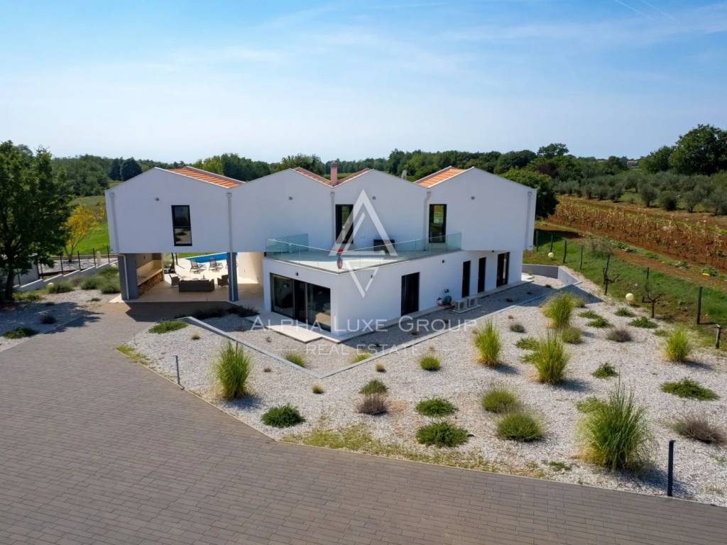 Discover an exceptional villa for sale in Višnjan, positioned on the tranquil edge of a charming Istrian village. Surrounded by greenery and full privacy, this contemporary residence blends modern architecture with refined comfort on a spacious 6,271 m² plot. The villa includes 454 m² of indoor living space and an additional 119.47 m² of terraces designed for premium outdoor living.