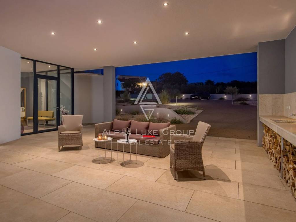 The upper floor includes four elegantly designed bedrooms, each with its own bathroom, along with two generous terraces overlooking the natural surroundings. Underfloor heating and a full air conditioning system ensure year round comfort.