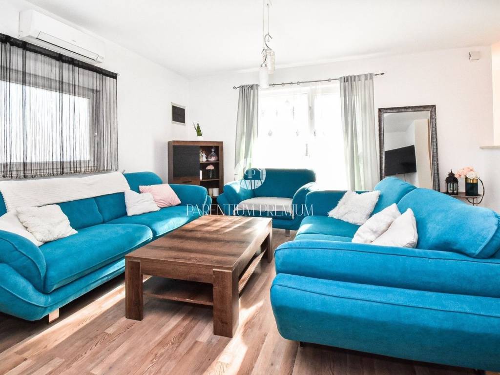 Istria, Poreč areaA comfortable ground-floor apartment with a total area of 75.30 m² is for sale in the surroundings of Poreč.The apartment consists of an entrance hall, two bedrooms, a bathroom, a kitchen with a dining area, and a living room with access to a covered terrace.In front of the apartment there is a yard with olive trees and three parking spaces with an electric gate.A storage/boiler room also belongs to the apartment.Heating and cooling are provided by air-conditioning units, and there is a chimney for a pellet or wood stove. The first phase of the installation for radiators has also been prepared.The apartment is being sold fully furnished.Do not miss the opportunity to secure a home or make a solid investment.
