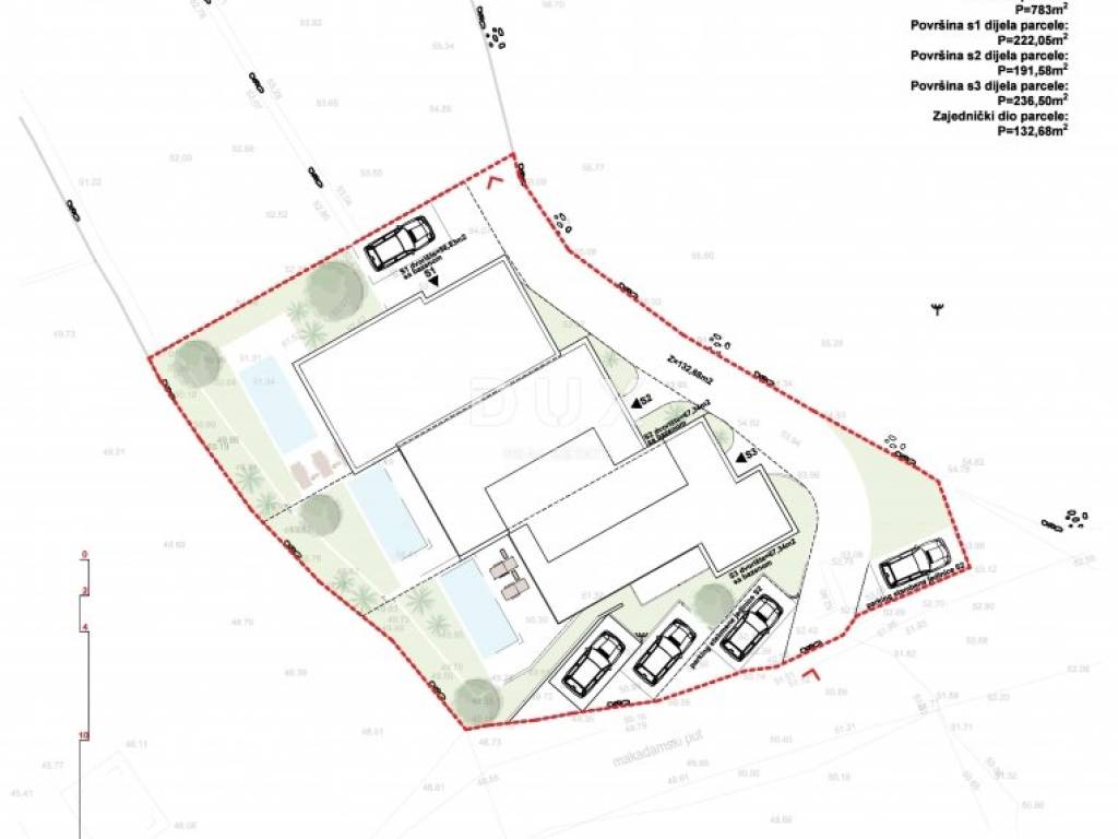 A modern triplex building with three separate residential units, each with a separate entrance, its own pool and garden, is being built on a lofty and elite location in Vodice.