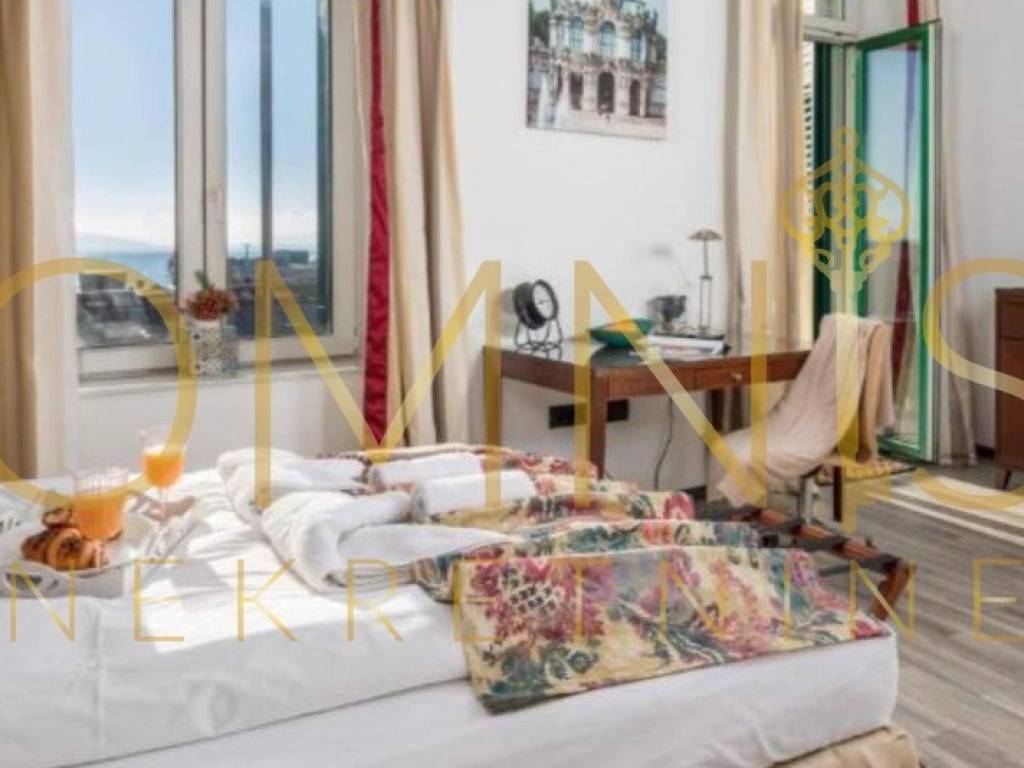 U prodaji atraktivna nekretnina savršena za investiciju – stan ukupne površine 165 m2, smješten na drugome katu uredne zgrade, na izuzetnoj lokaciji u blizini samog centra grada. Stan je u cijelosti prenamijenjen i opremljen kao 5 luksuznih studio apartmana, a prodaje se sa uhodanim poslom turističkog najma – prilika za one koji traže gotov i siguran povrat ulaganja. Raspored prostorija i sadržaj: 5 moderno i potpuno opremljenih studio apartmana Svaki studio ima vlastitu kupaonicu Zajednička potpuno opremljena kuhinja Dodatni toalet za zajedničko korištenje Spremište unutar stana Drvarnica u prizemlju zgrade Balkon s južnom orijentacijom i pogledom na more (jedan studio)
