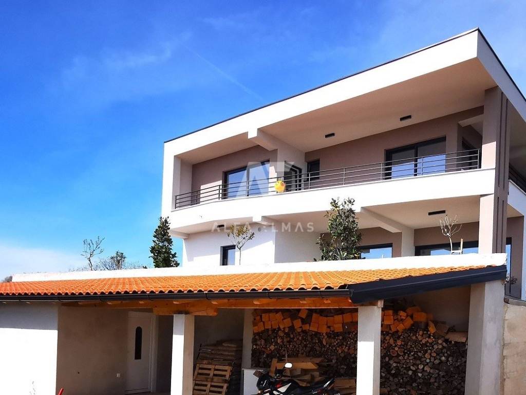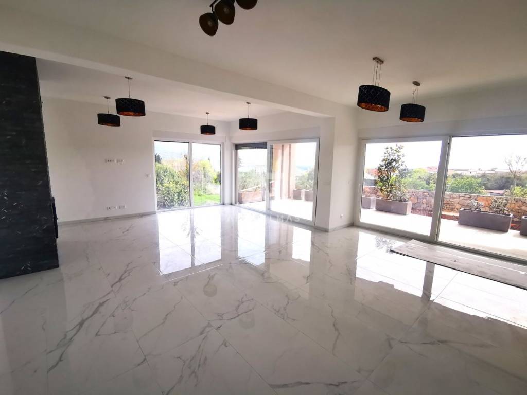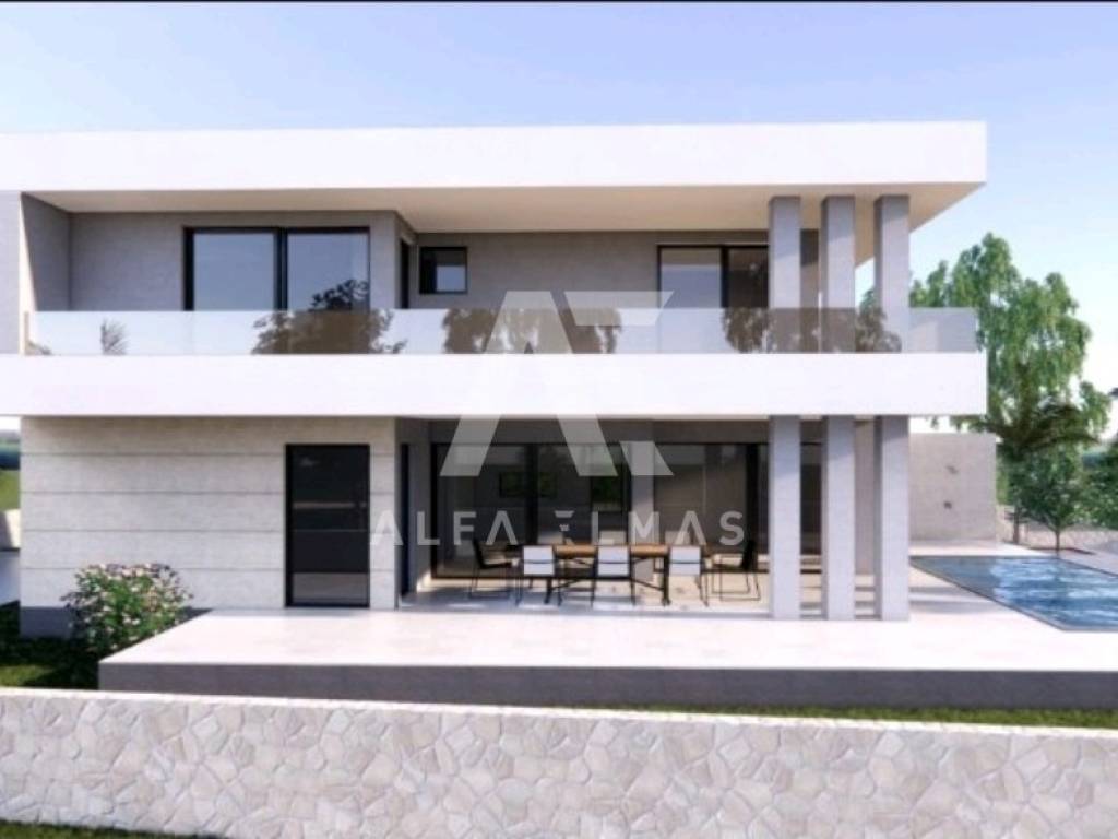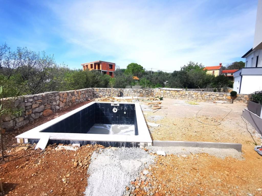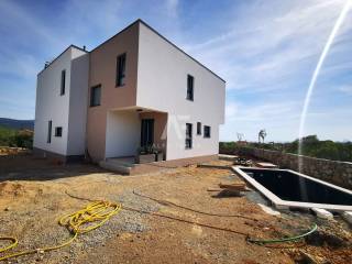 Krk, surroundings, modern imposing villa under construction located in a quiet location of a small island town with a wonderful view of the sea! In its 200m2 of living space, the fully air-conditioned Villa extends over the ground floor and first floor. On the first floor of the villa there is a laundry room and three airy bedrooms, each of which has its own bathroom with a walk-in shower and the possibility of exiting to the outdoor terrace with a view of the sea!! The spacious ground floor will have an abundance of natural light, while it will consist of a kitchen, dining room and living room. A separate bathroom as well as a guest toilet, a storage room and a sauna are also available on this floor. From the ground floor of the Villa, there is an exit to a large covered terrace with a large 7m long pool and sun deck. As part of the Villa, there will be an outdoor barbecue that invites you to socialize with guests. High-quality construction and top-quality equipment. The modern villa in the vicinity of Krk will be equipped with underfloor heating in all bathrooms, solar panels for hot water, Daikin air conditioners and video surveillance, a charging station for electric cars, PVC carpentry, floor coverings made of high-quality ceramics and top-quality sanitary facilities. The environment itself will be beautifully landscaped with Mediterranean plants and supplied with an irrigation system. The villa is located on a completely fenced plot suitable for four-legged pets, covered parking for 2 vehicles and is located only 1500m from the sea, well-kept beaches and accompanying facilities.