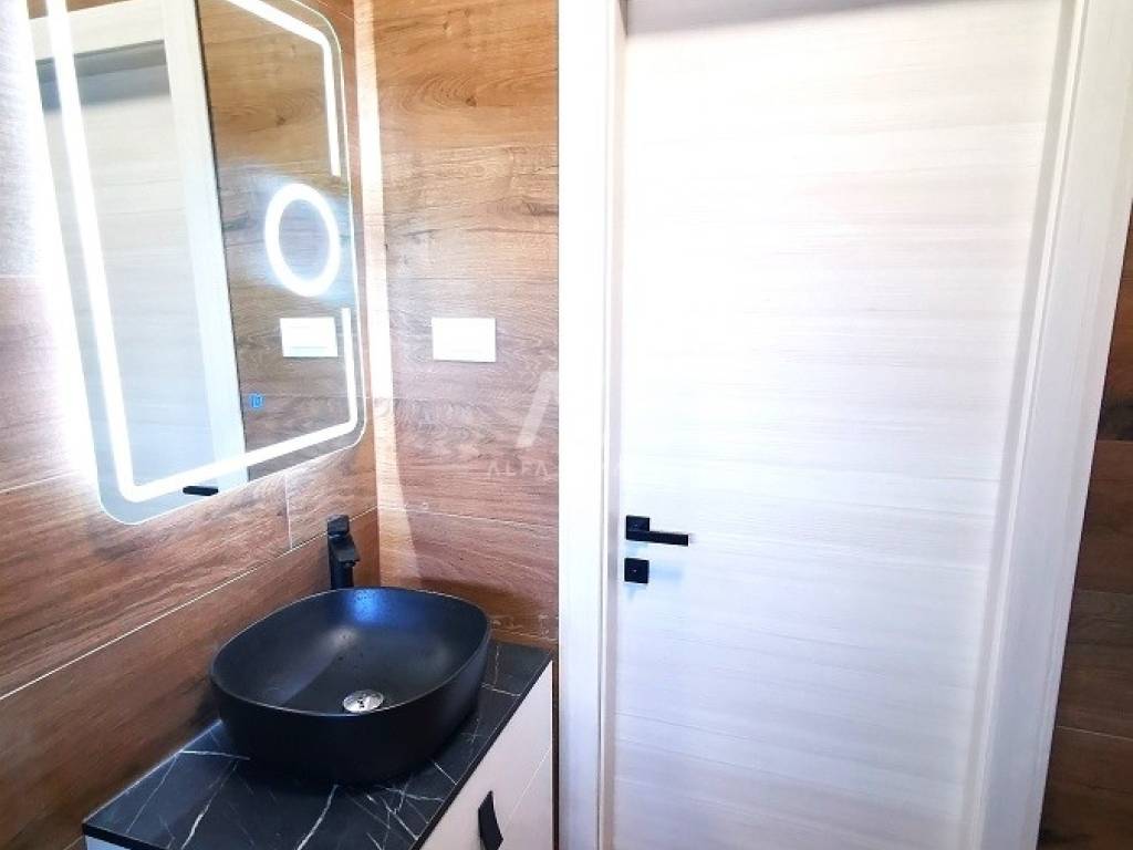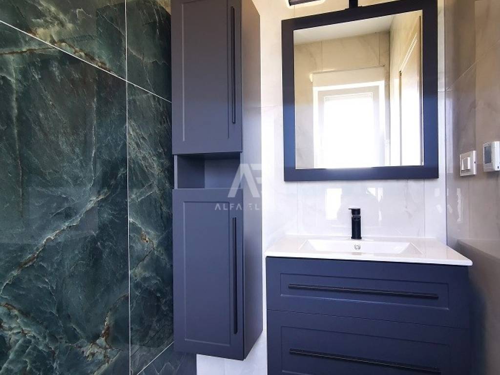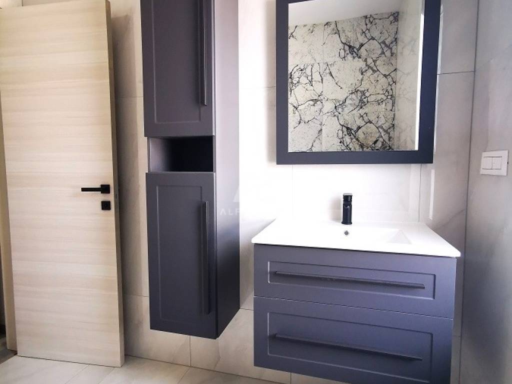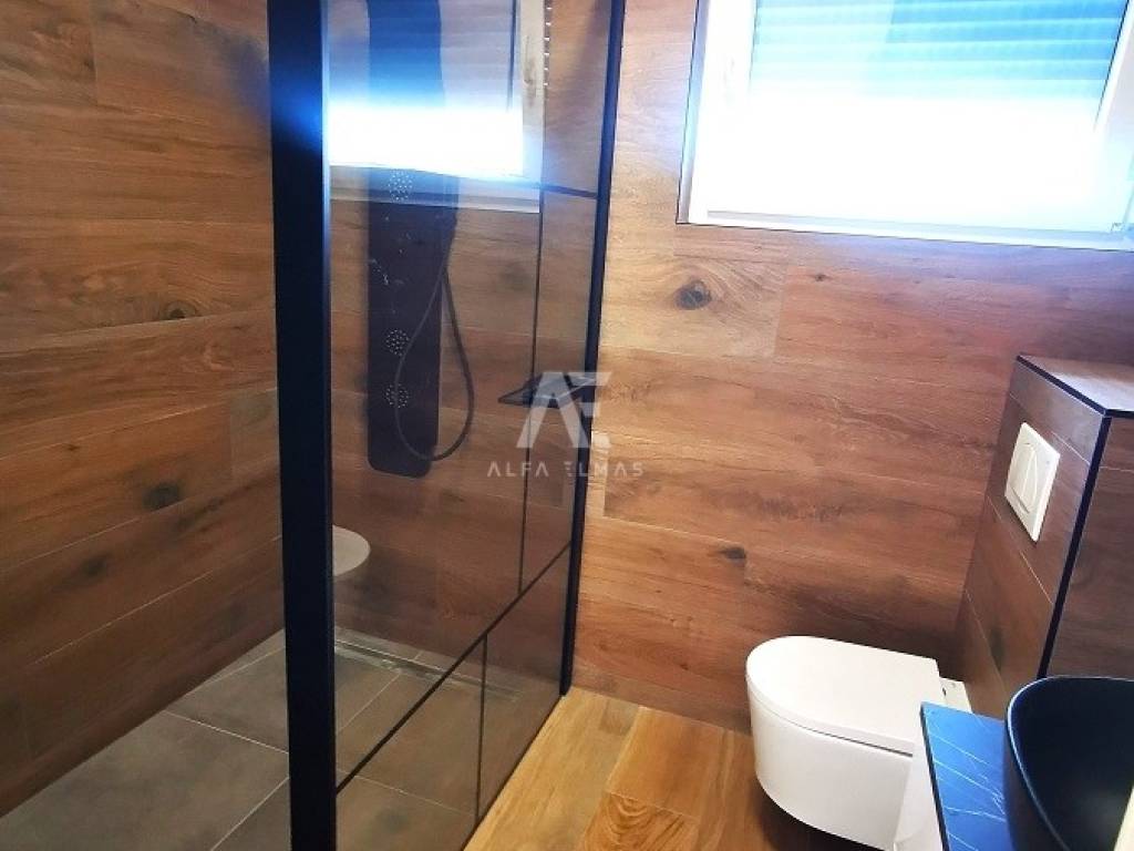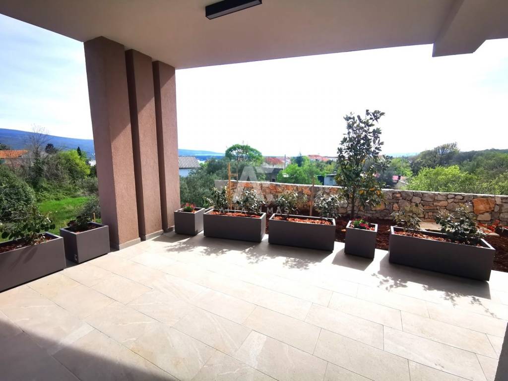Krk, surroundings, modern imposing villa under construction located in a quiet location of a small island town with a wonderful view of the sea! In its 200m2 of living space, the fully air-conditioned Villa extends over the ground floor and first floor. On the first floor of the villa there is a laundry room and three airy bedrooms, each of which has its own bathroom with a walk-in shower and the possibility of exiting to the outdoor terrace with a view of the sea!! The spacious ground floor will have an abundance of natural light, while it will consist of a kitchen, dining room and living room. A separate bathroom as well as a guest toilet, a storage room and a sauna are also available on this floor. From the ground floor of the Villa, there is an exit to a large covered terrace with a large 7m long pool and sun deck. As part of the Villa, there will be an outdoor barbecue that invites you to socialize with guests. High-quality construction and top-quality equipment. The modern villa in the vicinity of Krk will be equipped with underfloor heating in all bathrooms, solar panels for hot water, Daikin air conditioners and video surveillance, a charging station for electric cars, PVC carpentry, floor coverings made of high-quality ceramics and top-quality sanitary facilities. The environment itself will be beautifully landscaped with Mediterranean plants and supplied with an irrigation system. The villa is located on a completely fenced plot suitable for four-legged pets, covered parking for 2 vehicles and is located only 1500m from the sea, well-kept beaches and accompanying facilities.