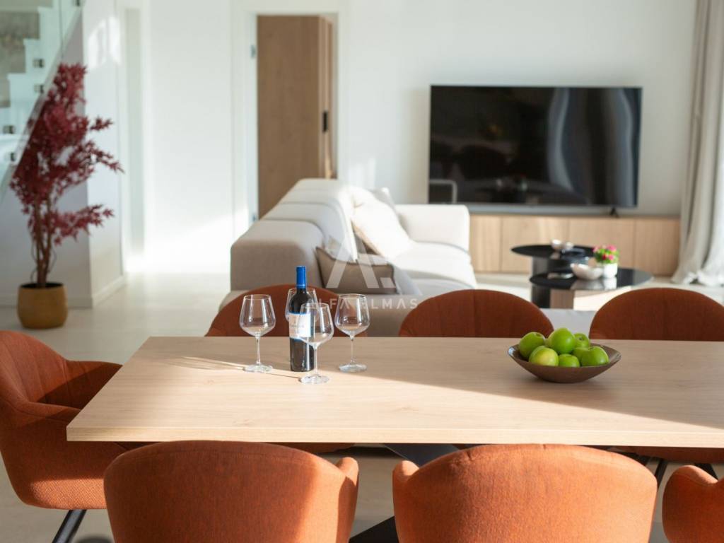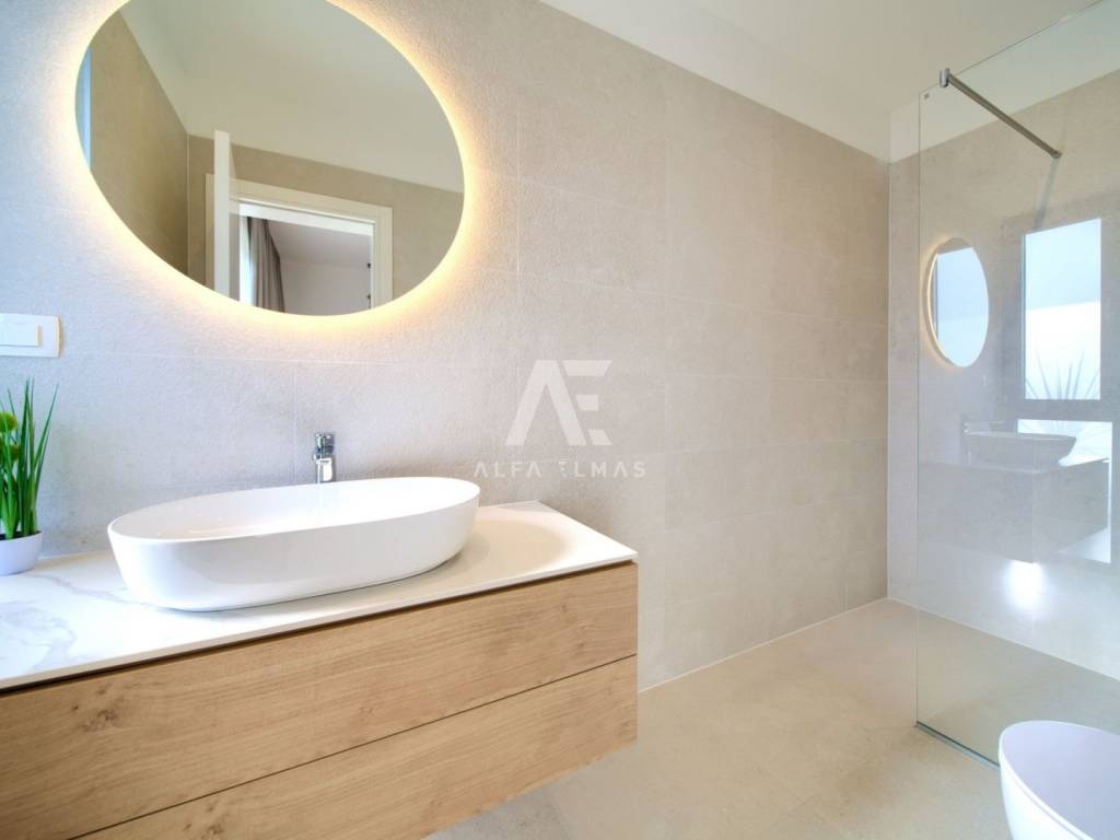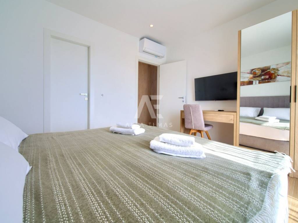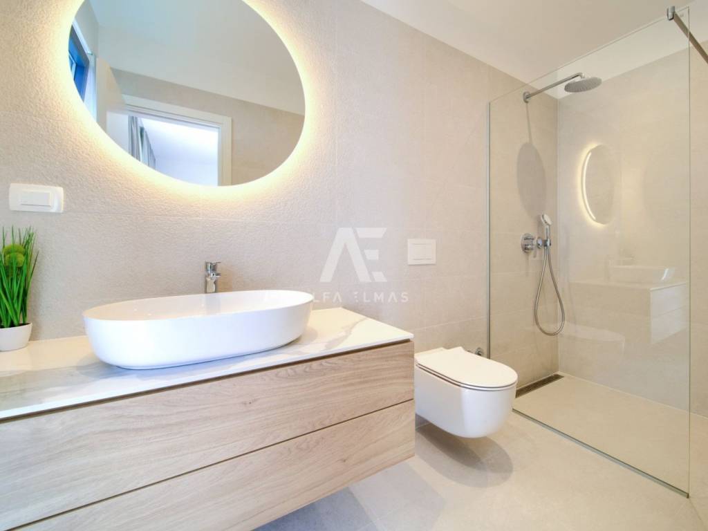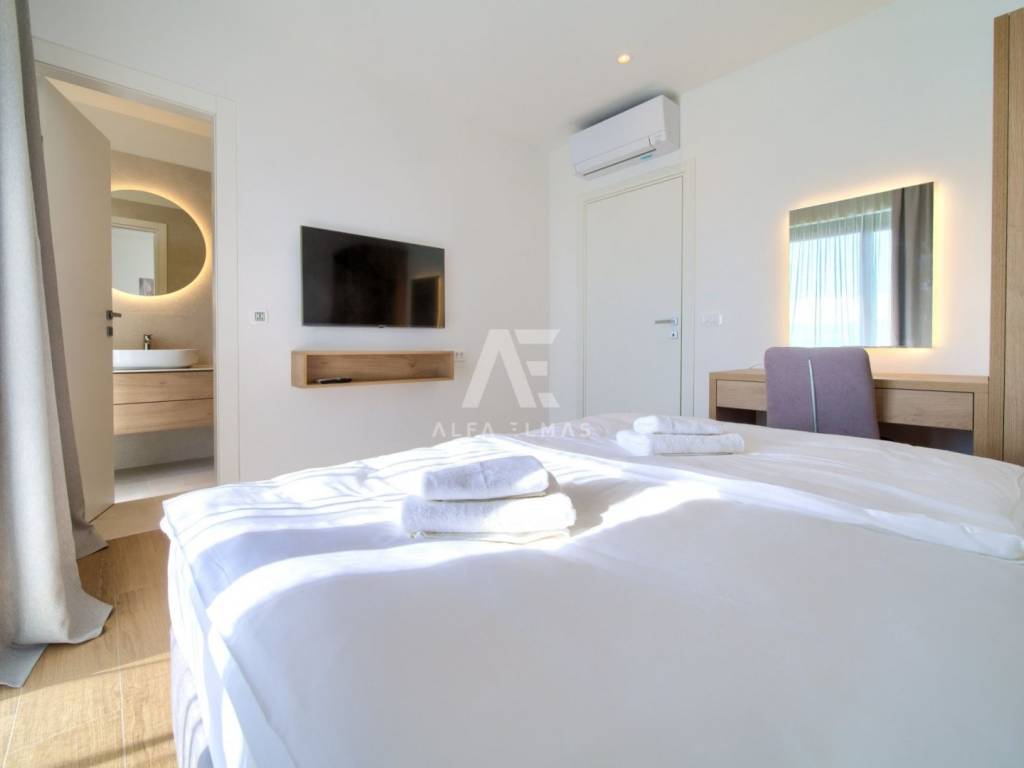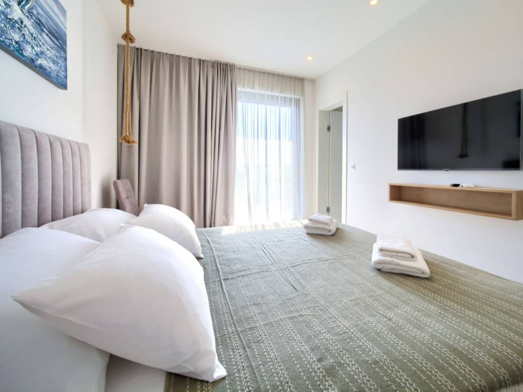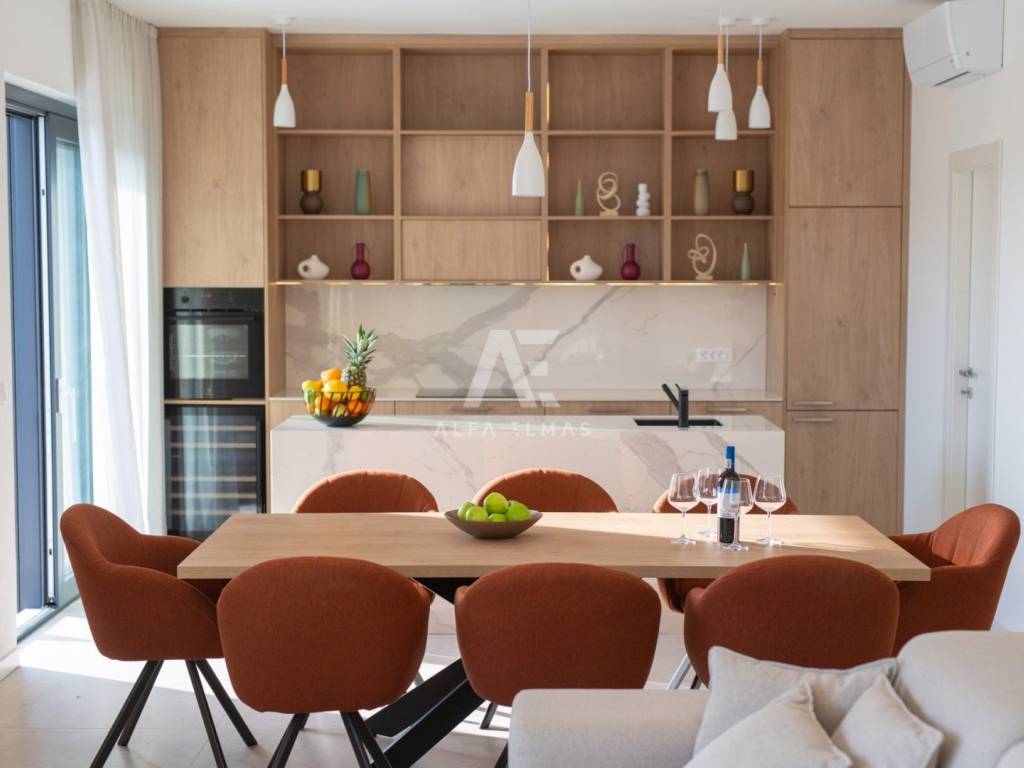 Krk, the surrounding area is located Villa. A spacious and elegant Villa of modern architecture in an enviable location with a panoramic view of the sparkling Adriatic Sea. In its 245 m2 of living space, the fully air-conditioned Villa extends over the basement, ground floor and first floor. At the same time, it has 4 airy bedrooms, each of which has its own bathroom with a walk-in shower. One bedroom located on the ground floor with access to the terrace. The remaining three bedrooms with their own bathrooms are located on the first floor of the villa and have access to the balcony. The spacious ground floor is full of natural light, while it will consist of a kitchen, dining room and living room. A separate toilet is also available on this floor. From the ground floor of the Villa there is an exit to a large terrace with a large pool. The future owners can enjoy the unsurpassed view from the pool or from the comfortable deck chairs that surround it. If you want to stay outdoors, you can prepare meals in the summer kitchen with a grill on the terrace while you can enjoy them in the outdoor dining area. High-quality construction, modern architecture and top-quality equipment. The villa will be equipped with PVC carpentry, blinds, high-quality ceramic floor coverings and sanitary facilities, electric underfloor heating throughout the house. The villa is located on a completely fenced plot of 910 m2. The villa has built-in parking for 2 vehicles and is located 1000m from the sea, landscaped beaches and accompanying facilities. The documentation is in order.