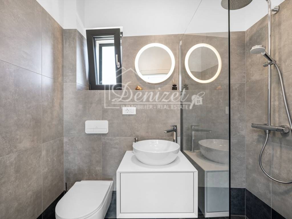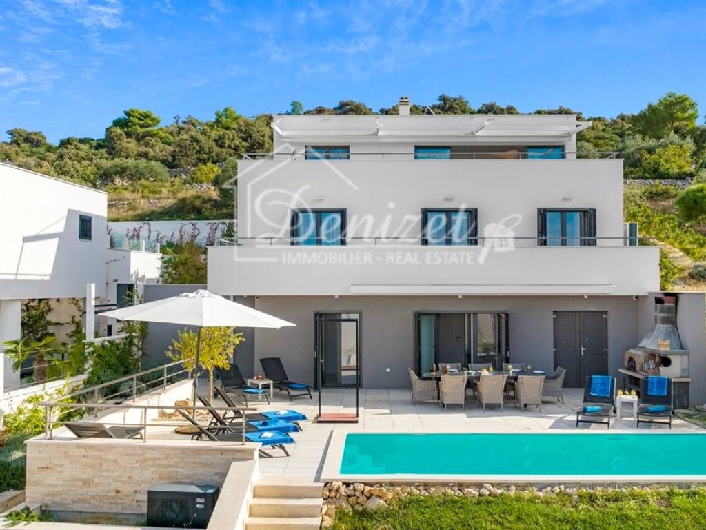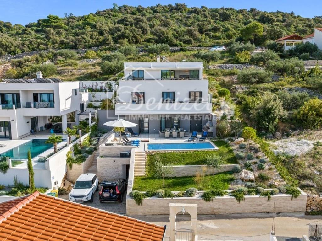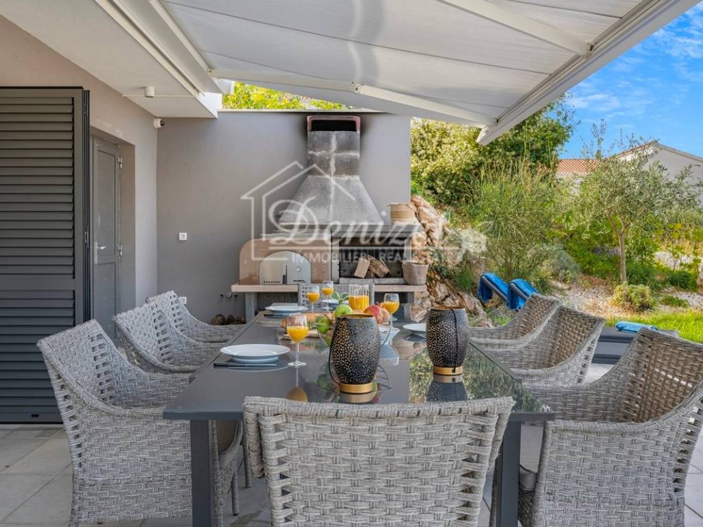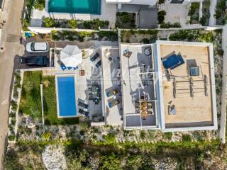 The landscaped yard includes two uncovered parking spaces. The villa is built with high-quality materials and carefully furnished and equipped to a high standard. This property represents a perfect blend of luxury and functionality, ideal as a holiday villa as well as a highly attractive investment for tourist rental. The distance to Rogoznica is 11 km, to Trogir 25 km, and to Split Airport 30 km.