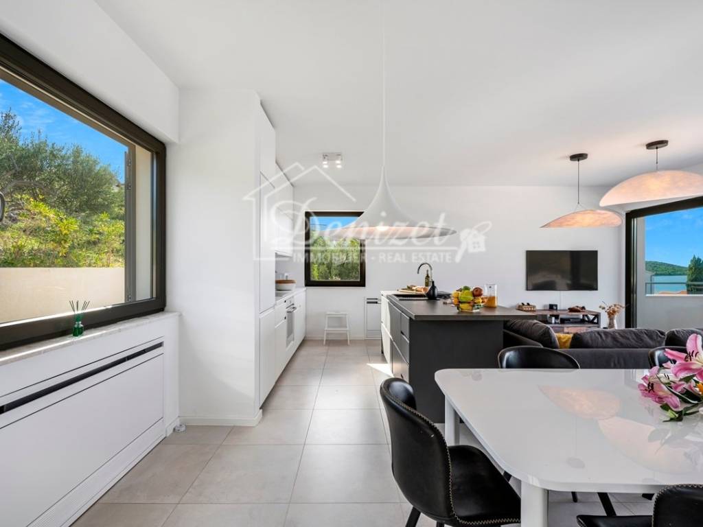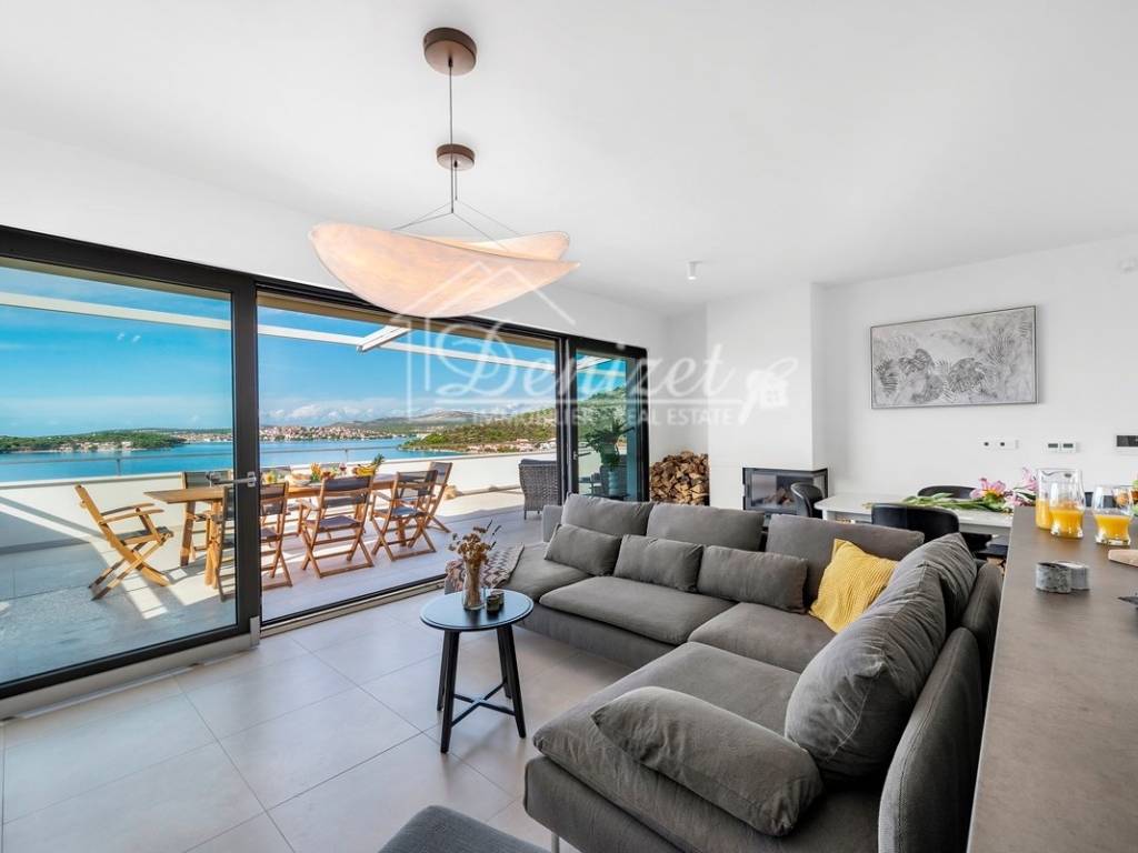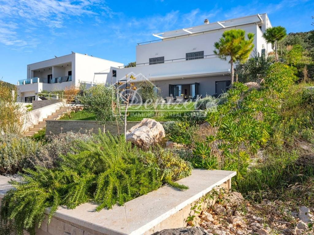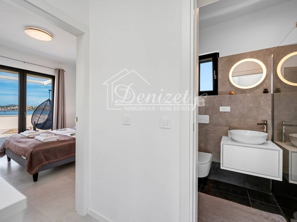 An exclusive villa is for sale, located just 100 meters from the sea in a peaceful area near Rogoznica. The villa is situated on a plot of 626 m² with net living space of 164 m², along with an additional 100 m² of spacious terraces.