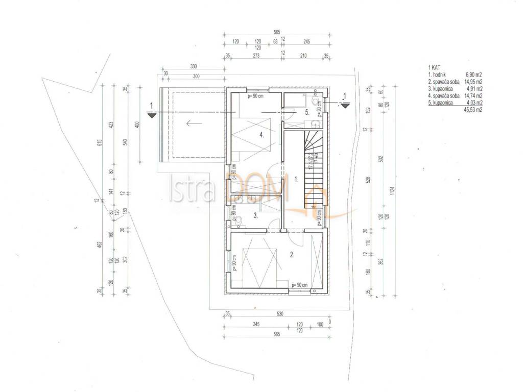 Vila će imati prizemlje i prvi kat te sunčalište i bazen od 4 x 7 m2. Kraj bazena terasa i kućica s kaminom za vanjski boravak.