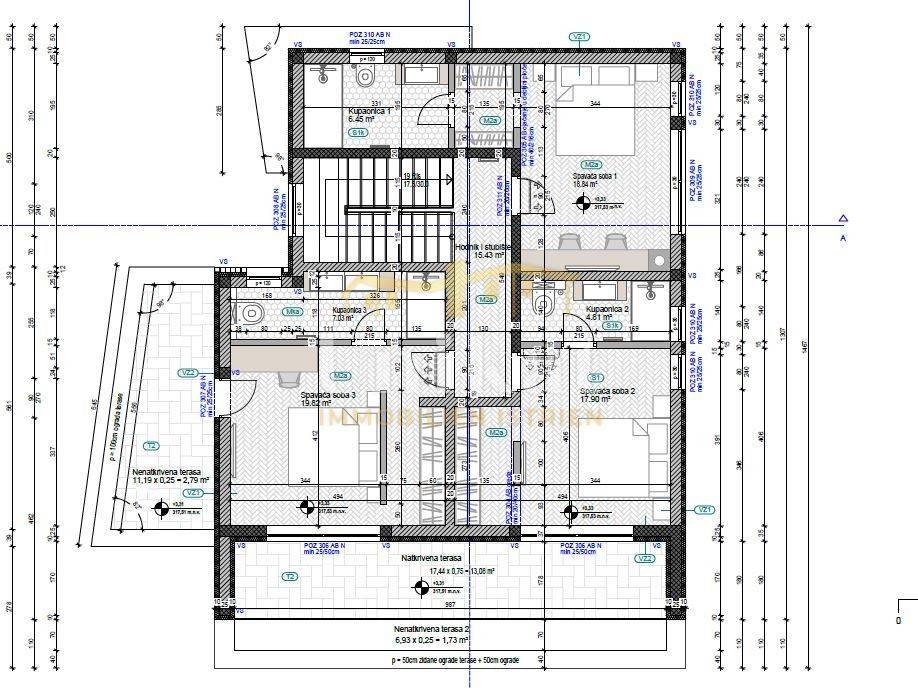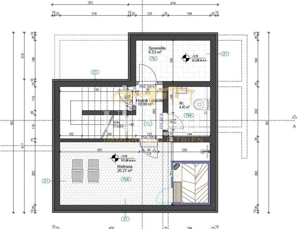 Proyecto de la casa: En el proyecto de construcción está prevista una casa familiar con garaje y piscina. La casa tendría sótano, planta baja y primer piso con una superficie habitable total de 254 m2. En el sótano están previstas una sala de bienestar, un trastero y un aseo. En la planta baja habrá una amplia sala de estar con cocina y comedor, una sala de fitness, un aseo para invitados con lavandería y una sala técnica. Desde la sala de estar se prevé acceso directo a una terraza cubierta con cocina de verano, y a continuación hacia la piscina con solárium. En el primer piso habría tres dormitorios, cada uno con su propio baño privado y vestidor. Dos habitaciones tendrán salida a un balcón cubierto.