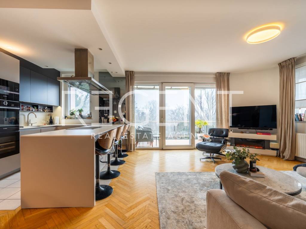 In a quiet and residential area below Sljeme in Zagreb, in Šestine, this comfortable and quality apartment is located, which combines privacy, greenery and proximity to the city center. Although the entrance to the apartment is on the ground floor from the street side, it is important to emphasize that on the south side the building is positioned at the height of the second floor, which ensures complete privacy, plenty of daylight and an open view towards the greenery and the city. The apartment has a total area of 122 m² and a layout that is very pleasant for everyday life. It is a three-room apartment with a spacious living room connected to the kitchen and dining room, which forms the center of the home and opens onto a terrace facing a peaceful, green environment. The space feels bright, airy and harmonious, with a clear sense of peace and separation from the city bustle. The property is well maintained, well equipped and ready to move in without additional investment. The common gym in the building, available exclusively to the residents, gives special value to this apartment, which further raises the level of comfort and quality of living. In addition to all of the above, the location allows quick and easy access to the city center, while providing peace and privacy characteristic of the area below Sljeme. For more information or to arrange a viewing, feel free to contact us.