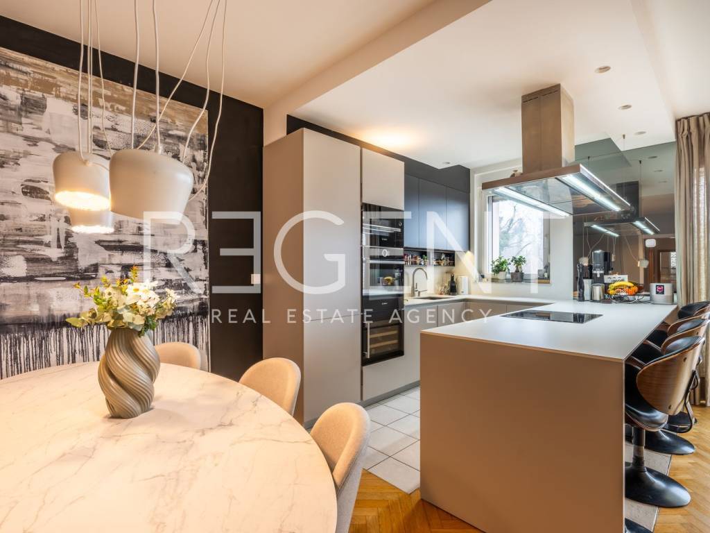 In a quiet and residential area below Sljeme in Zagreb, in Šestine, this comfortable and quality apartment is located, which combines privacy, greenery and proximity to the city center. Although the entrance to the apartment is on the ground floor from the street side, it is important to emphasize that on the south side the building is positioned at the height of the second floor, which ensures complete privacy, plenty of daylight and an open view towards the greenery and the city. The apartment has a total area of 122 m² and a layout that is very pleasant for everyday life. It is a three-room apartment with a spacious living room connected to the kitchen and dining room, which forms the center of the home and opens onto a terrace facing a peaceful, green environment. The space feels bright, airy and harmonious, with a clear sense of peace and separation from the city bustle. The property is well maintained, well equipped and ready to move in without additional investment. The common gym in the building, available exclusively to the residents, gives special value to this apartment, which further raises the level of comfort and quality of living. In addition to all of the above, the location allows quick and easy access to the city center, while providing peace and privacy characteristic of the area below Sljeme. For more information or to arrange a viewing, feel free to contact us.