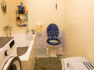 Classic two-room apartment, 48 m2, oriented to the east with a view of the city. Good concept with 2 larger rooms, kitchen with dining room with access to a small balcony, hallway, bathroom with toilet and pantry. On the ground floor attached woodshed. The apartment requires renovation. Classic electric heating. Side view of the sea towards the Krĕk bridge. The building is in an excellent location, close to the bus, shops and all other essential amenities. For all information, call 385 98/264-783