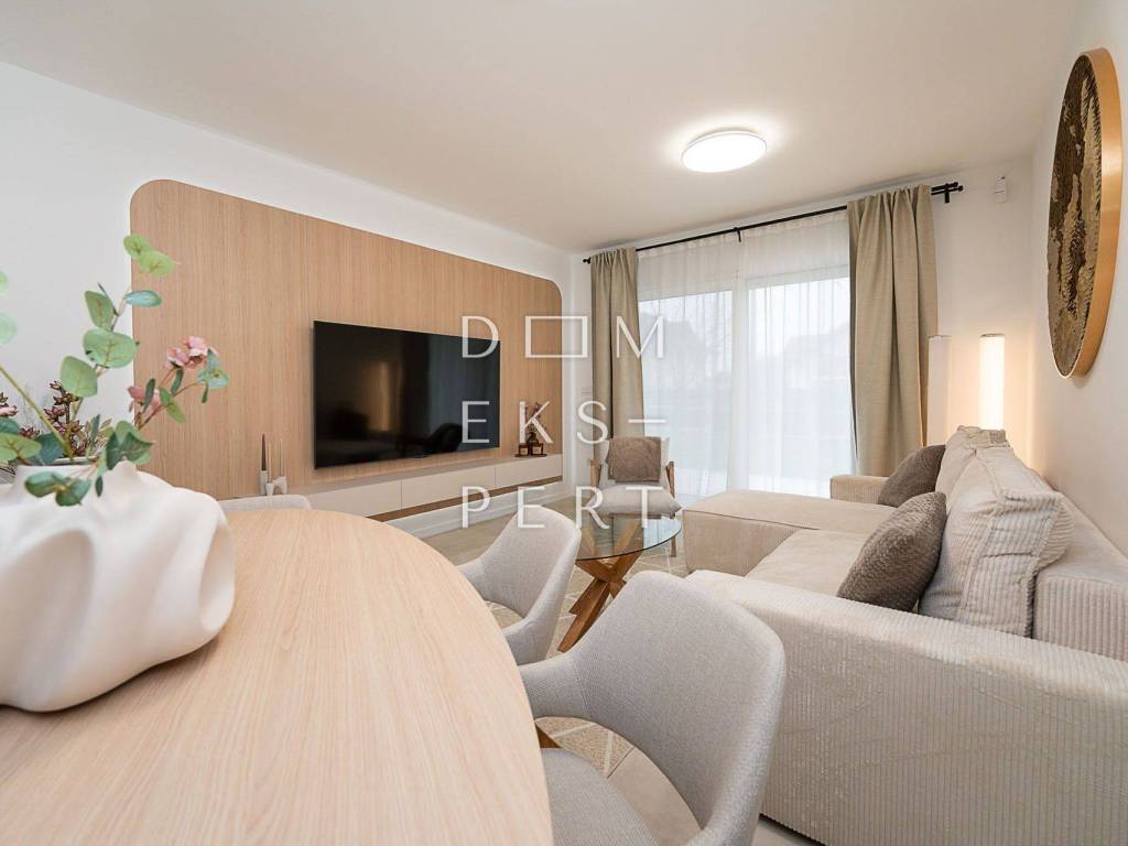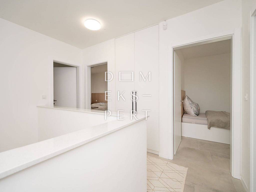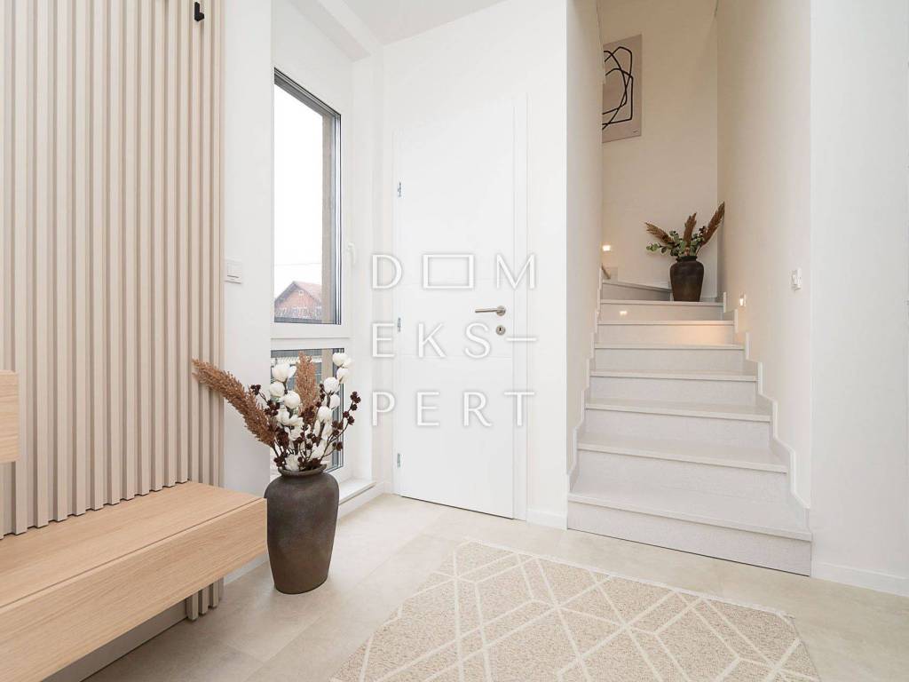 A four-room, fully furnished and fully equipped duplex apartment with a garden and two parking spaces. The apartment is designed as a townhouse-style unit, located in a pleasant and quiet area of Dugo Selo. It consists of a ground floor and an upper floor.