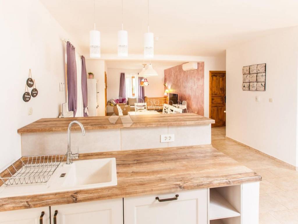 An internal staircase leads to the first floor, where three tastefully decorated bedrooms are located. Two bathrooms are available one large bathroom with a jacuzzi and shower, and another with a shower cabin. One bedroom has access to a balcony offering a beautiful view of the garden, pool and surrounding greenery, where only the sound of birds breaks the peaceful silence.