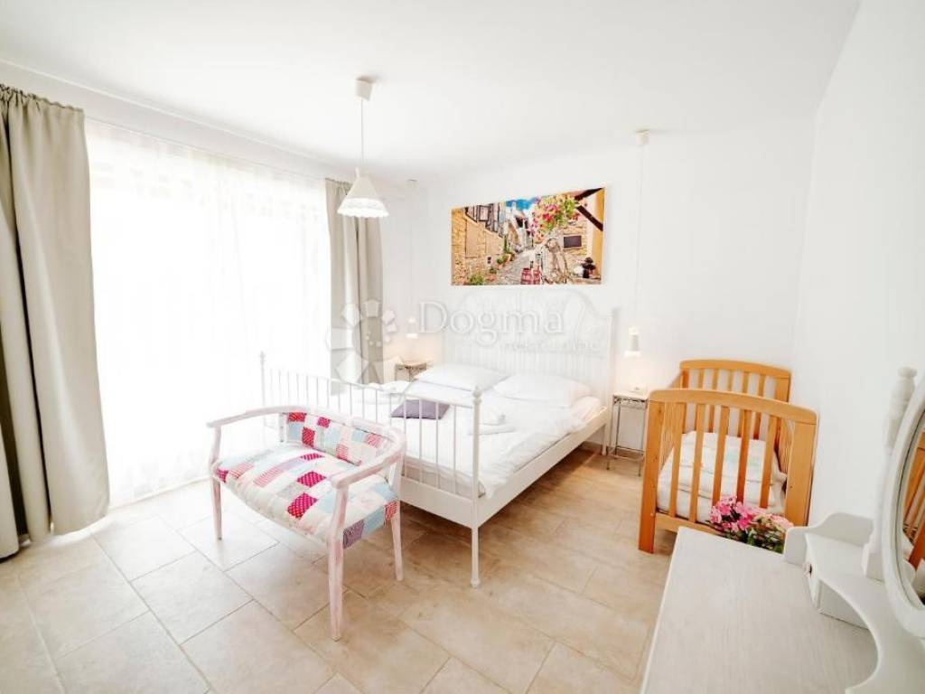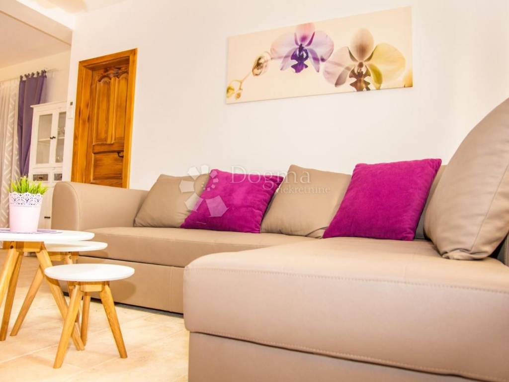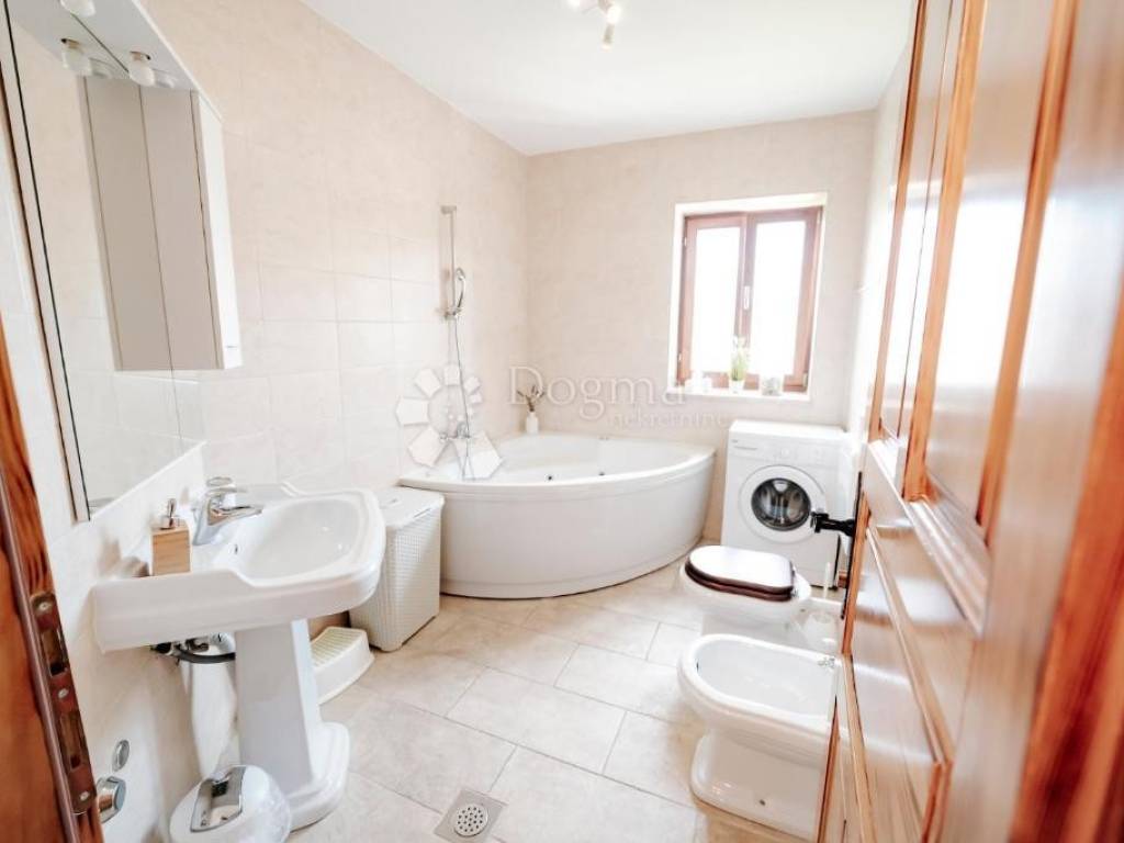 The house is spread over two floors and a basement, with a total living area of 185.34 m. Its exterior is adorned with high-quality Istrian stone, while the spacious plot of 1,102 m features a modern 50 m swimming pool with hydromassage. The meticulously landscaped garden, planted with Mediterranean vegetation around the entire property, creates a true oasis of peace.