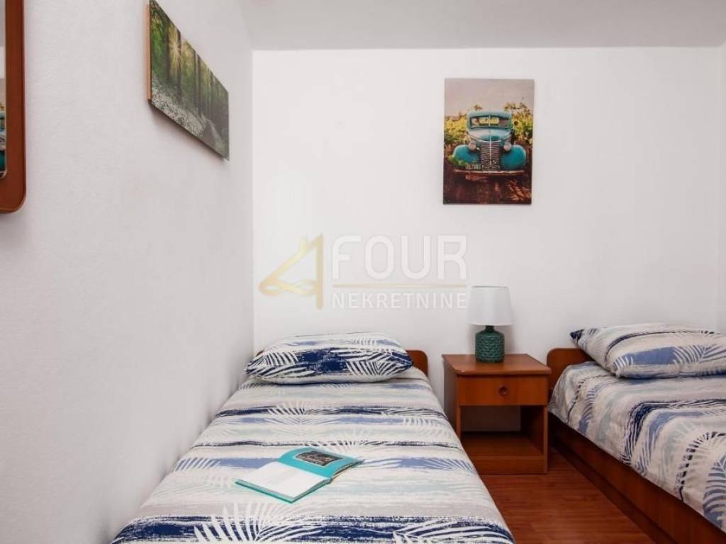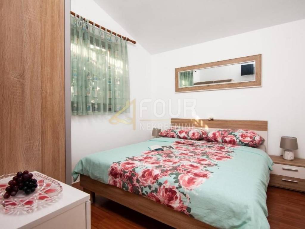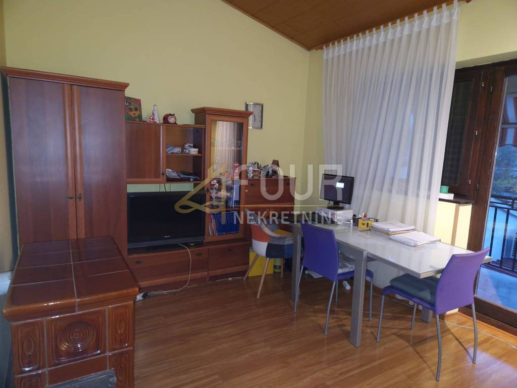 On the first floor there are two bedrooms, a kitchen, a living room, a bathroom and a loggia.