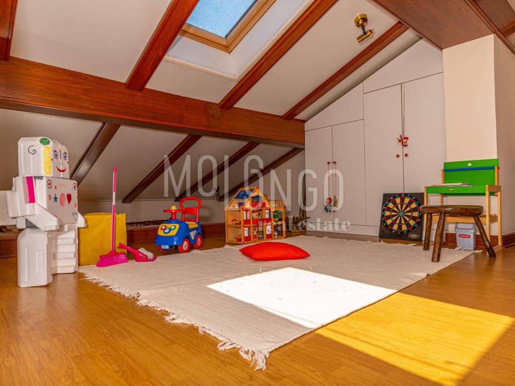 In the high attic there is a large apartment with a gallery. It is designed as an apartment with a living room, 2 bedrooms, a room on the gallery, kitchen and dining room, wardrobe, storage room.