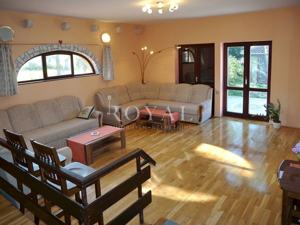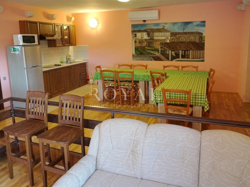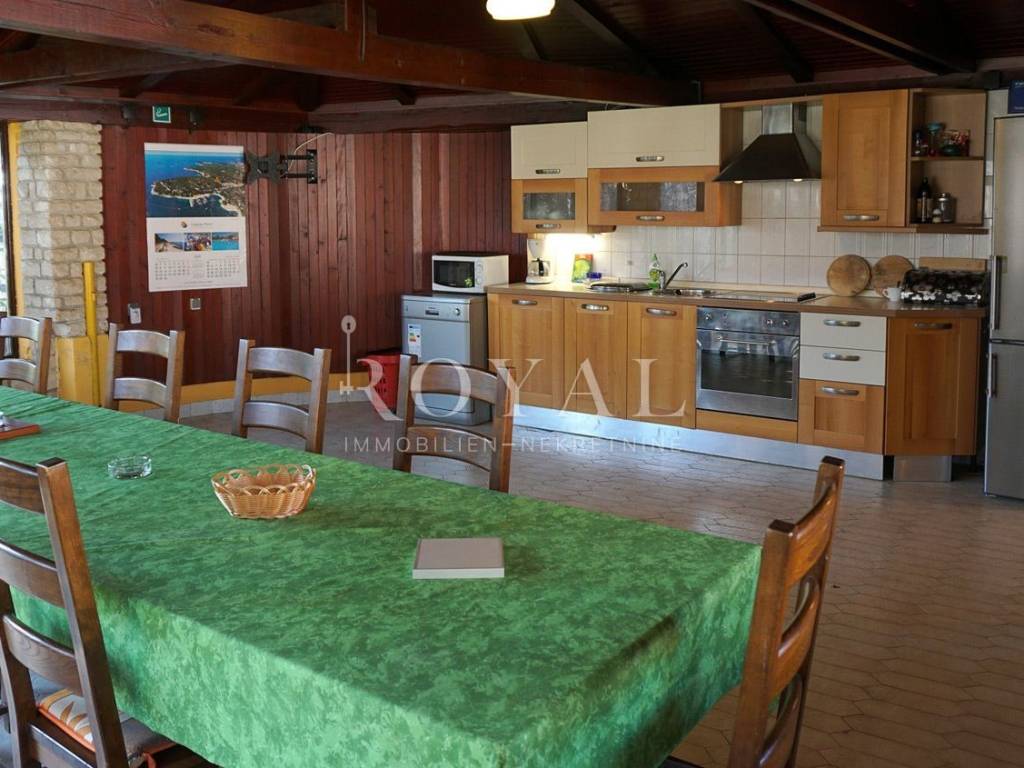 • Rustikalna konoba (veličine 44 m2) u masivnom drvetu i kamenu, s ognjištem i trijemom