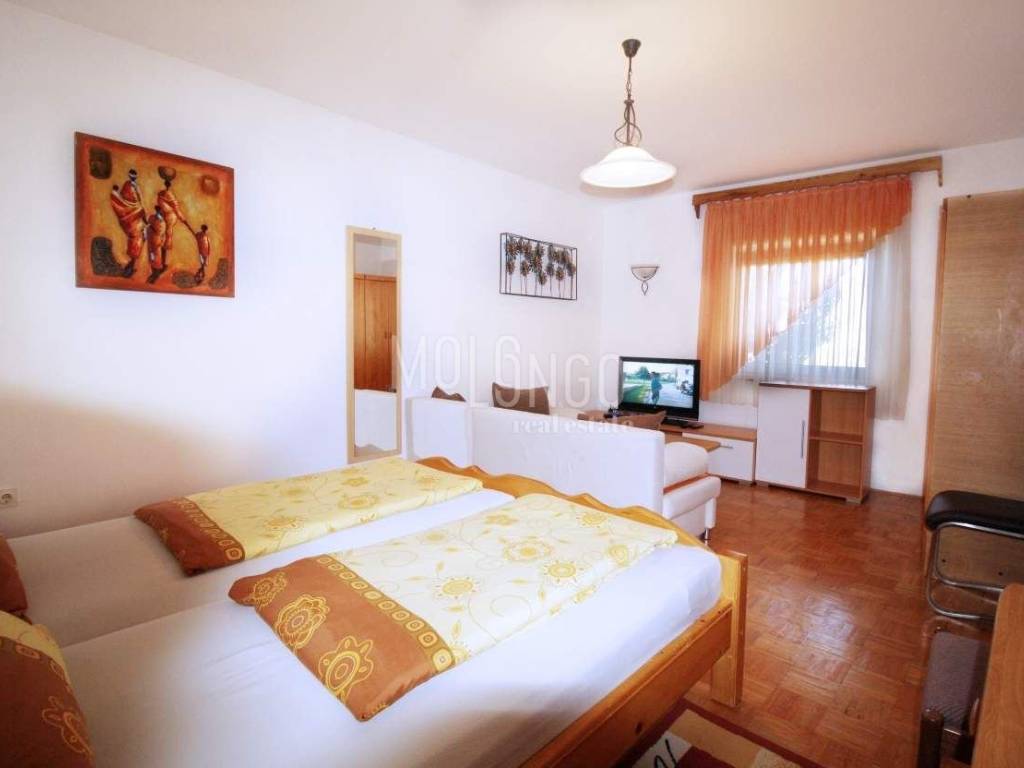 Very nice, idyllically located, detached holiday home in Lopar on the island of Rab, air-conditioned house with a living area of 140 m² on 2 floors. There are 6 parking spaces on the property. In the garden there is a beautiful area for a barbecue, a garden shower and a comfortable seating area with rattan furniture. The holiday home is perfect for rental and makes a good return.