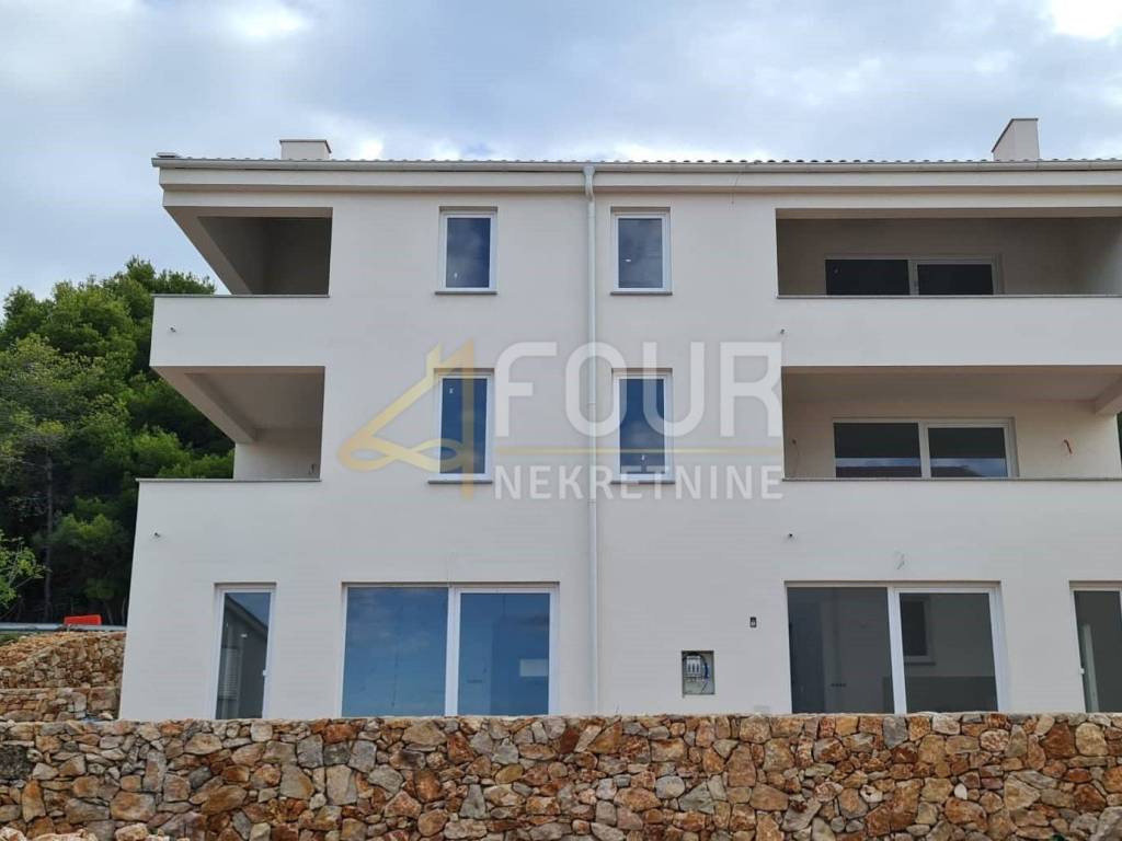 New construction in an excellent position with a beautiful view of the entire Cres and the sea! This 100m2 apartment consists of a kitchen, dining room and living room, pantry, two bedrooms, hallway, bathroom and a spacious terrace. The apartment also has a storage room and a parking space. Quality materials and equipment are the features of this new building!