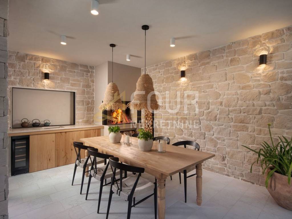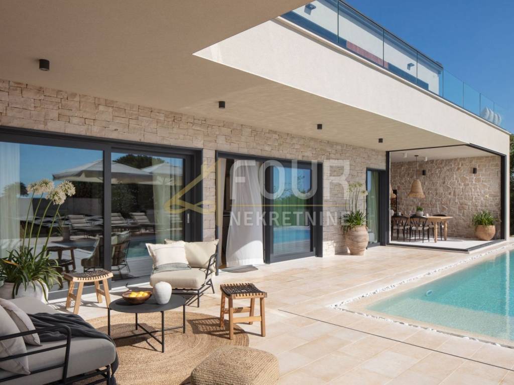 A modern detached villa with a pool is for sale in Tinjan, a luxury new construction project expected to be completed in 2025. Located in a quiet environment, just three kilometers from the picturesque center of the village, the villa offers a beautiful sea view. With a total living area of 270 m2, the villa is spread over the ground floor and first floor, designed to meet high standards of modern living.
