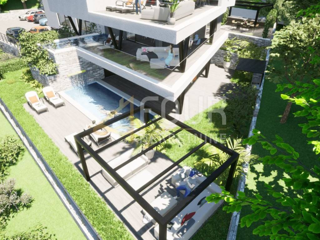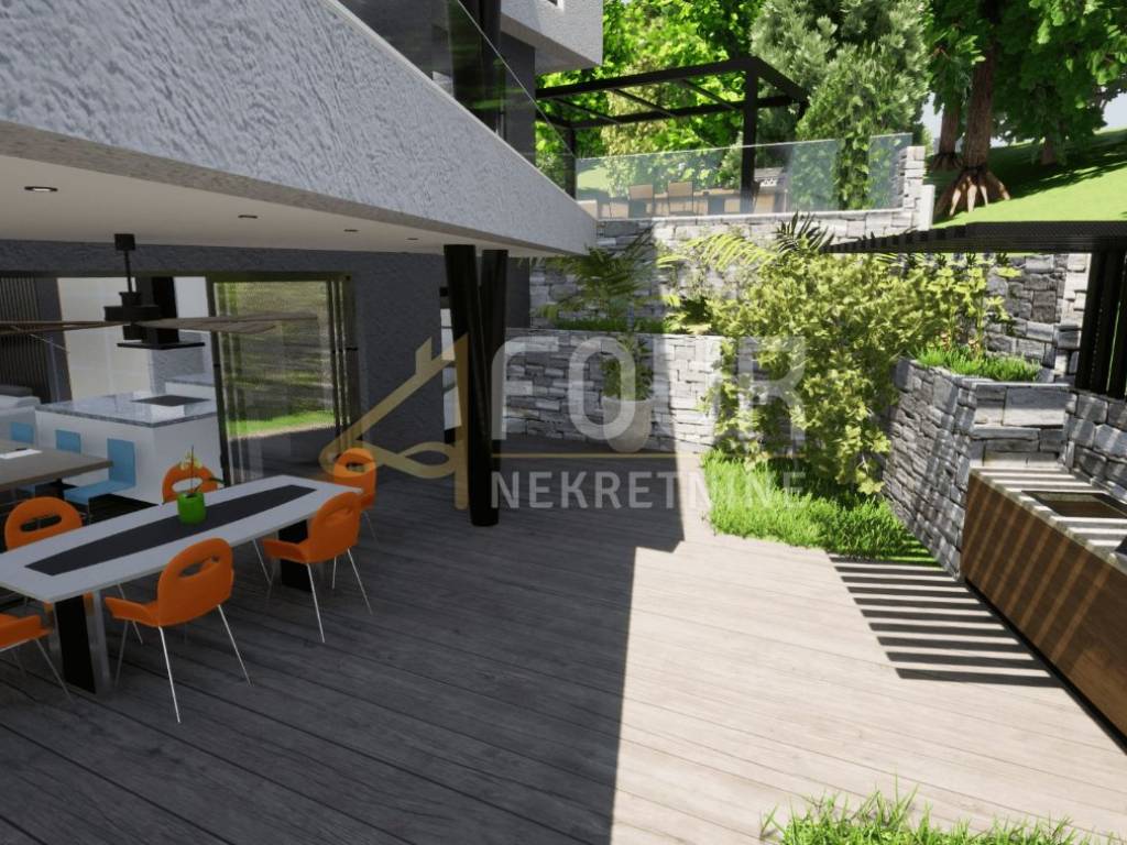 There is a heated pool with counter-current swimming in the garden, perfect for relaxation and recreation during warm summer days, while a separate entrance guarantees complete privacy and comfort. The apartment is equipped with a heat pump and underfloor heating, providing excellent energy efficiency and a pleasant stay throughout the year.