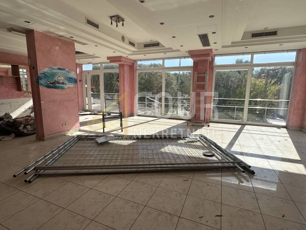 U prizemlju se nalazi glavni poslovni prostor, tri skladišna prostora, dva sanitarna čvora, kafić s predprostorom, te zasebni muški i ženski toalet.
