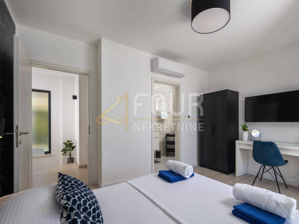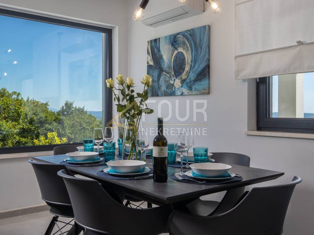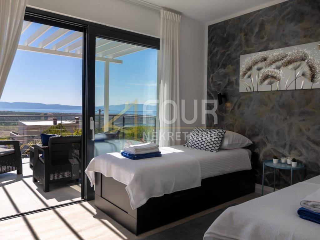 On the first floor there are two more bedrooms, each with its own bathroom, and a terrace with a wonderful view of the Kvarner Bay and the island of Krk.