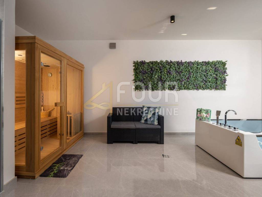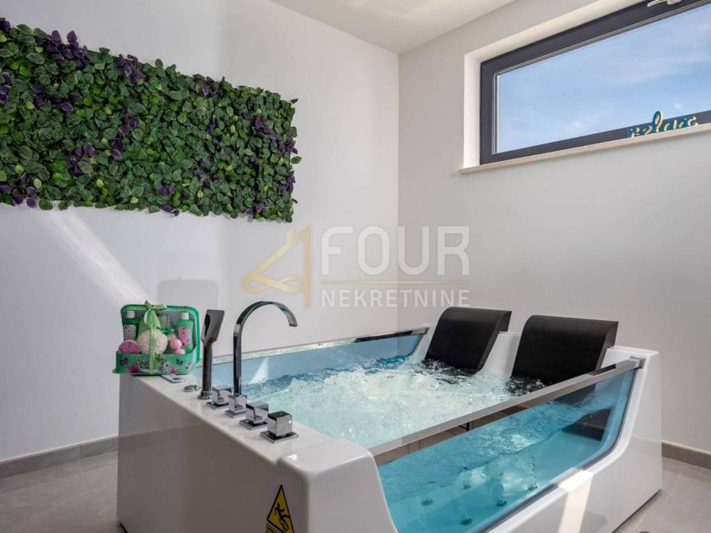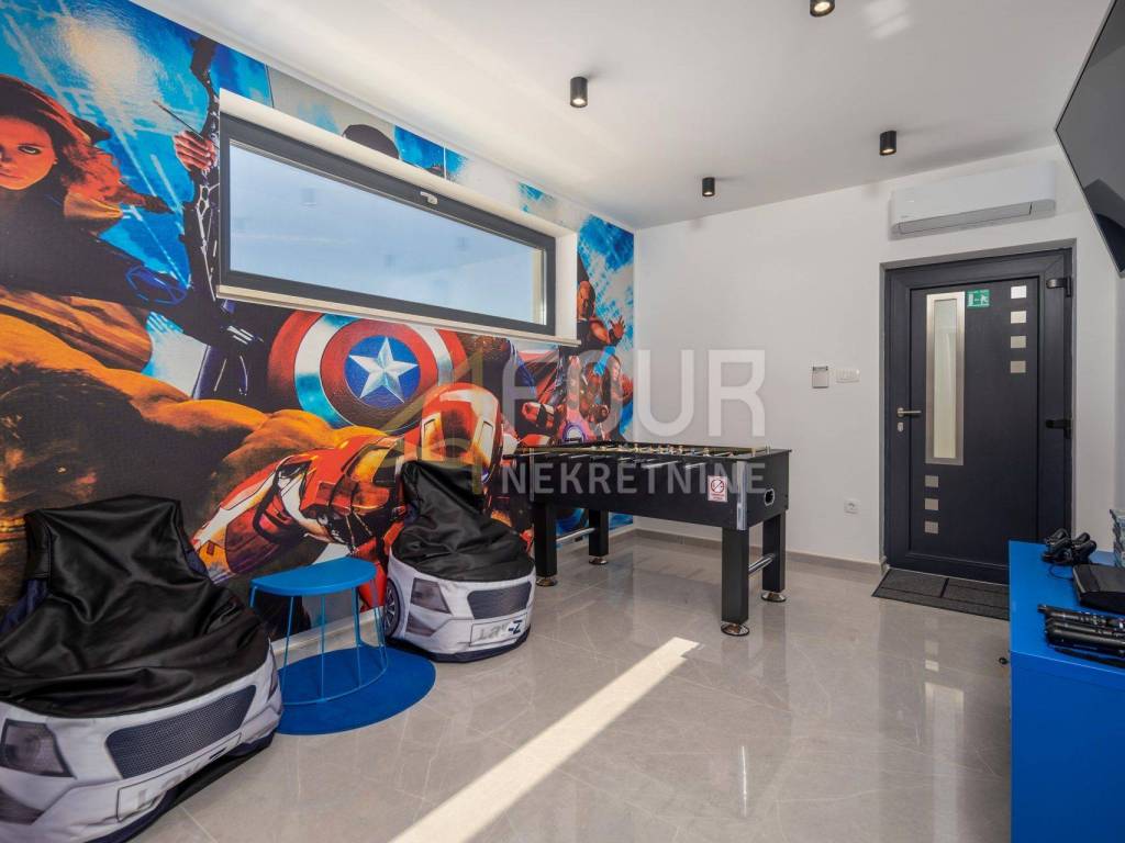 The basement of the house offers additional facilities, there is a game room, a fully equipped gym as well as a wellness area with a sauna, hydromassage tub and shower.