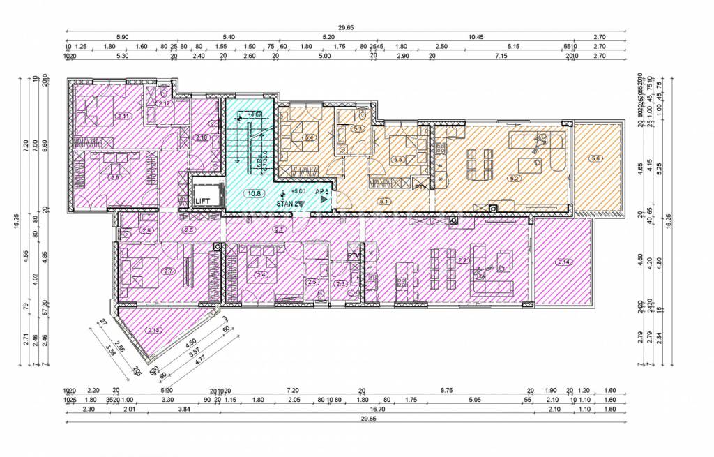 Apartment on II. floor, and consists of: entrance, kitchen/living room. living room, 5 bathrooms, 4 rooms, corridor, loggia and covered balcony, which includes 2 parking spaces with a total area of 25.17 m2 in the garage and a parking space with an area of 12.50 m2 outdoors, total usable area of 194.52 m2.