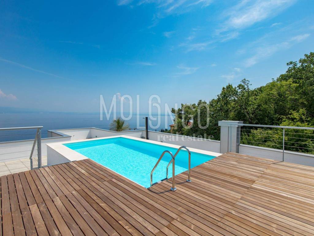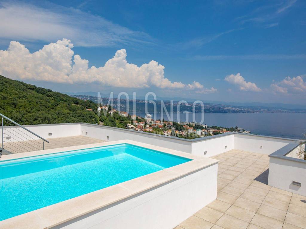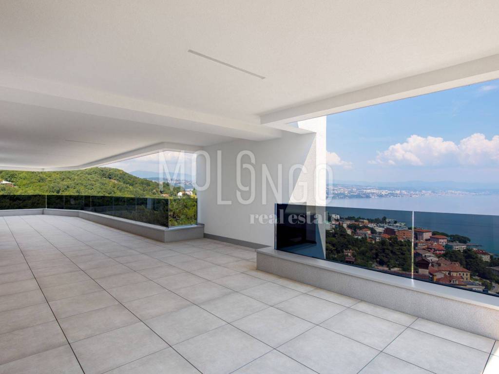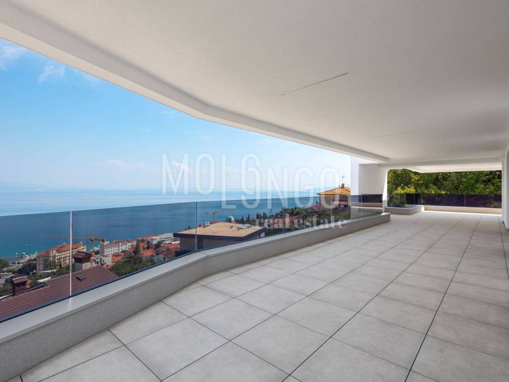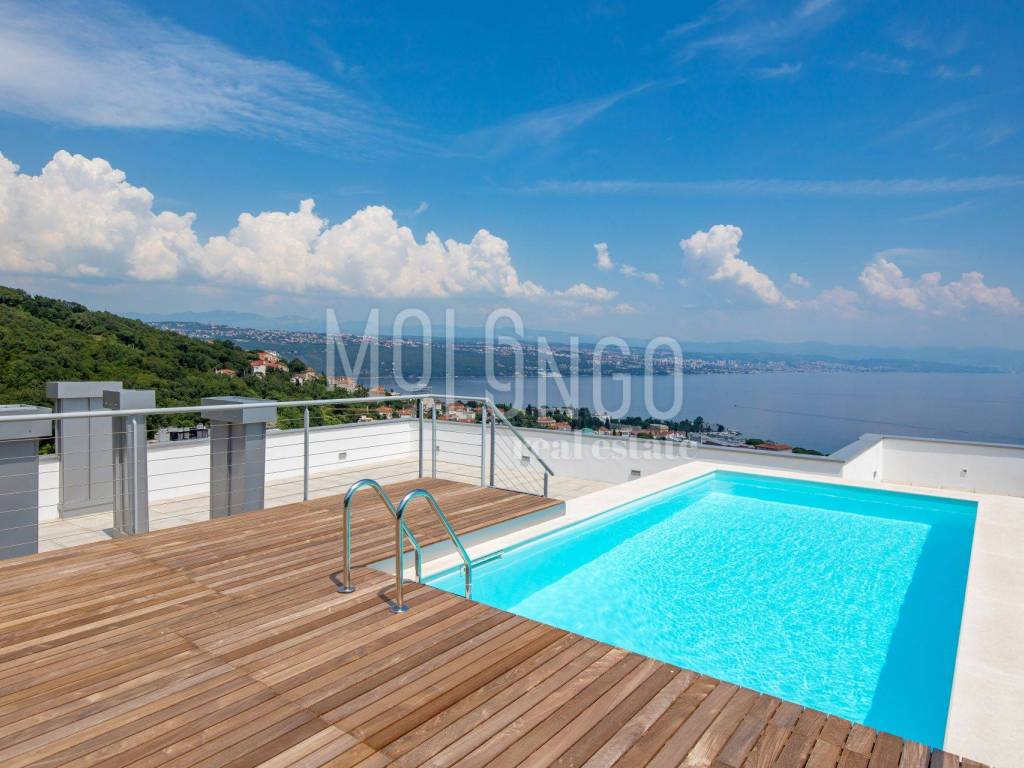 For sale is a luxurious 3-bedroom penthouse with direct access from the elevator in a new building with a swimming pool and an underground garage in the heart of Opatija, located in an ideal location with a view of the sea.