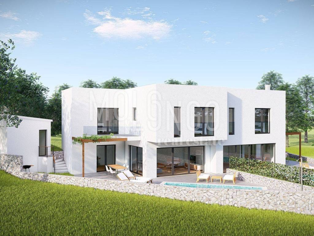 CRIKVENICA, SELCE, prodajemo građevinsko zemljište s pravomoćnom dozvolom za dvojnu kuću, svaka kuća ima svoj vlastiti bazen. Površina građevne čestice iznosi 678 m2 na kojoj je dozvoljena gradnja zgrade prizemlje i kat, garaža i dva bazena. U sklopu okućnice je predviđeno mjesto za četiri auta i jedan u garaži. Teren i pristupni put su očišćeni. Infrastruktura do terena.