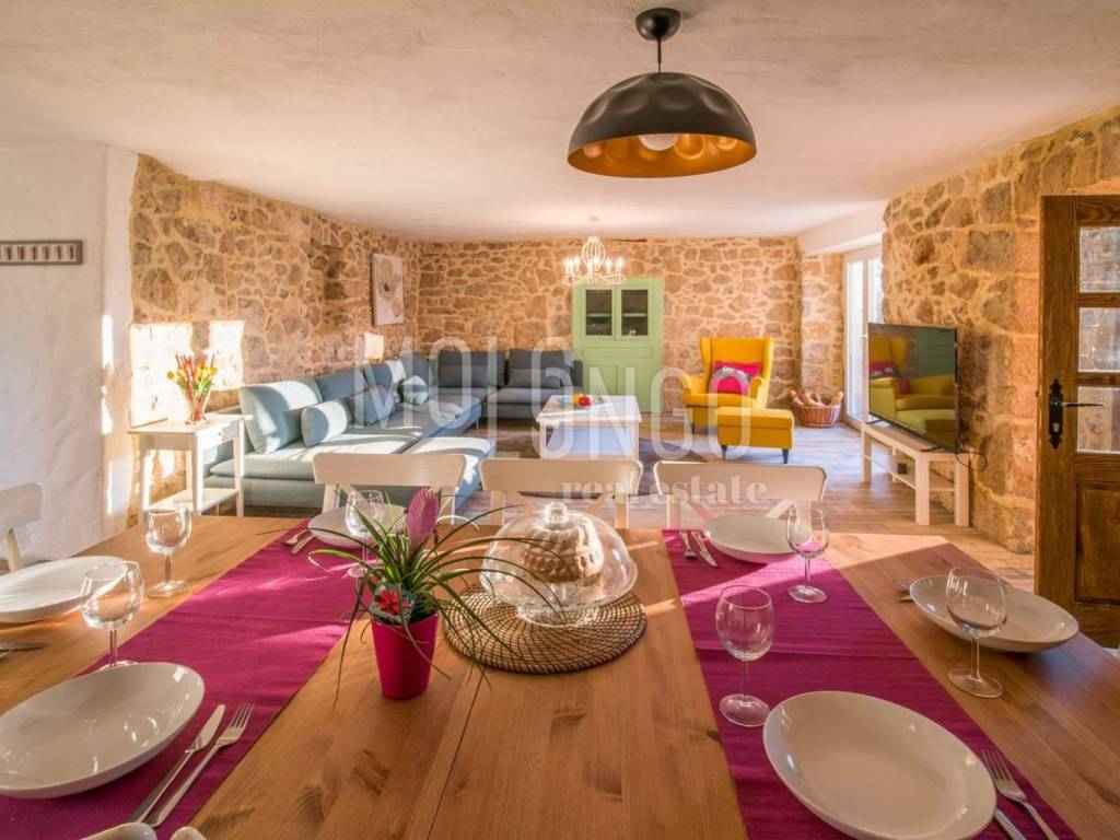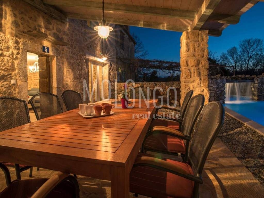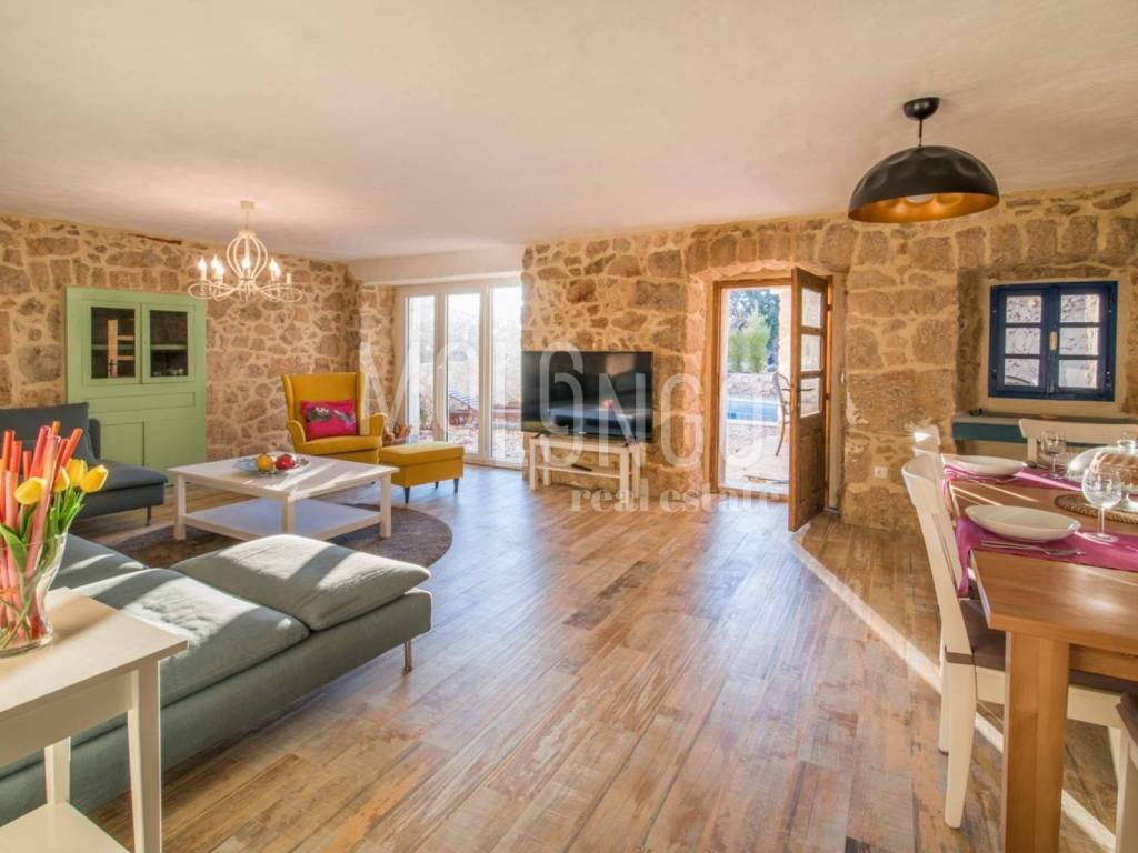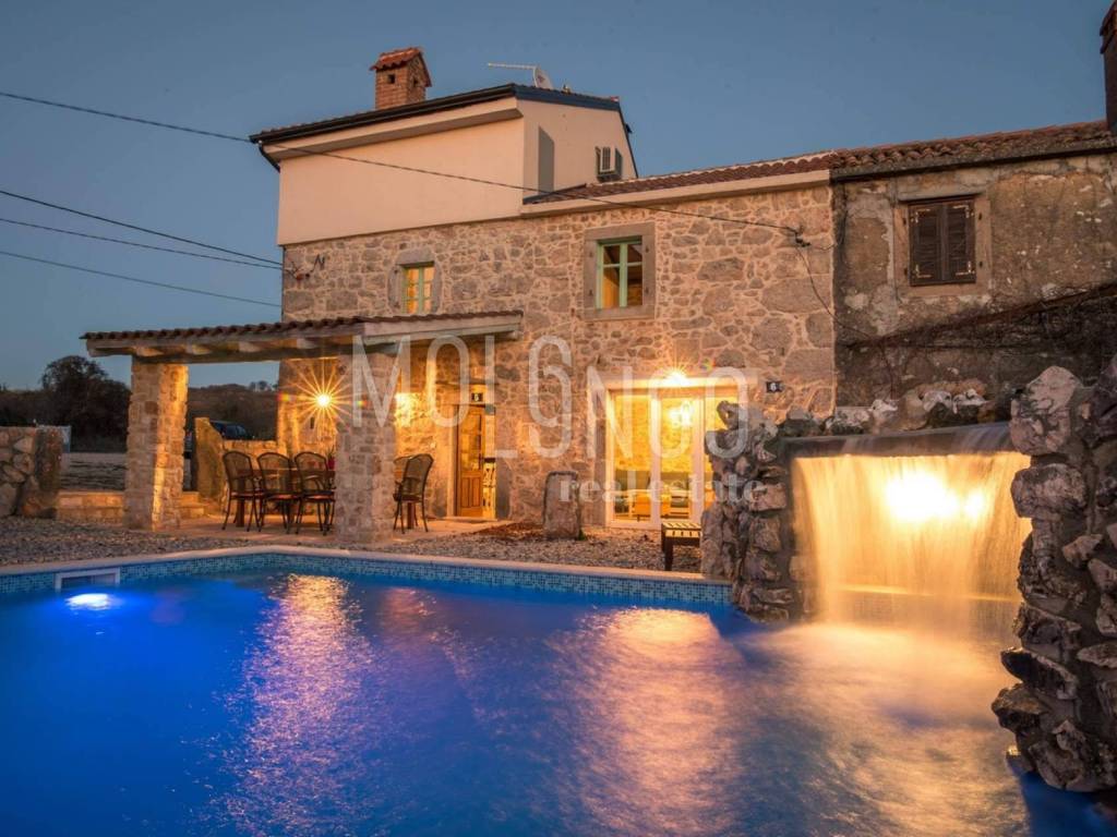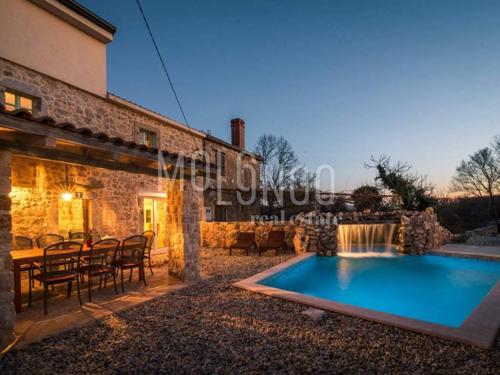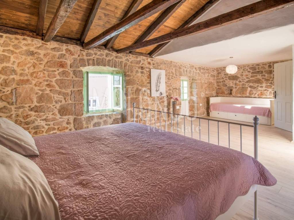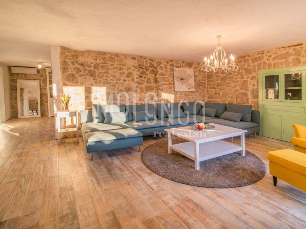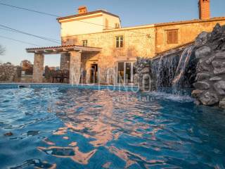 A beautifully adapted stone holiday house located near Vrbnik. The house is spread over three floors (ground floor, first and second floor) and has 4 bedrooms. In front of the house there is a garden with a covered terrace and a specially designed swimming pool with a waterfall of 35 m2. The materials used in the adaptation of the villa are of high quality. It is sold fully furnished and equipped. The house is surrounded by nature and is located in an excellent and peaceful location. Worth attention! For all information, contact the agen