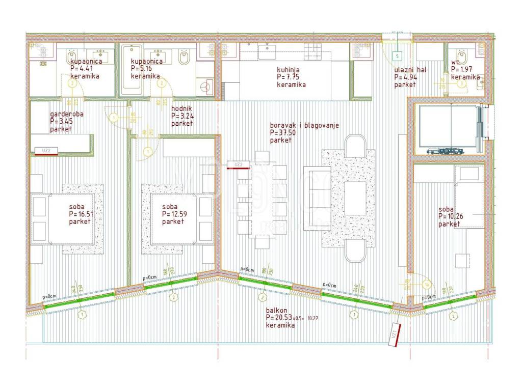 The building will be equipped with top-quality technical equipment, including a thermal facade system, a floor heating and cooling system with inverter air conditioners, Italian ceramics, first-class laminates and security doors with coded keys.