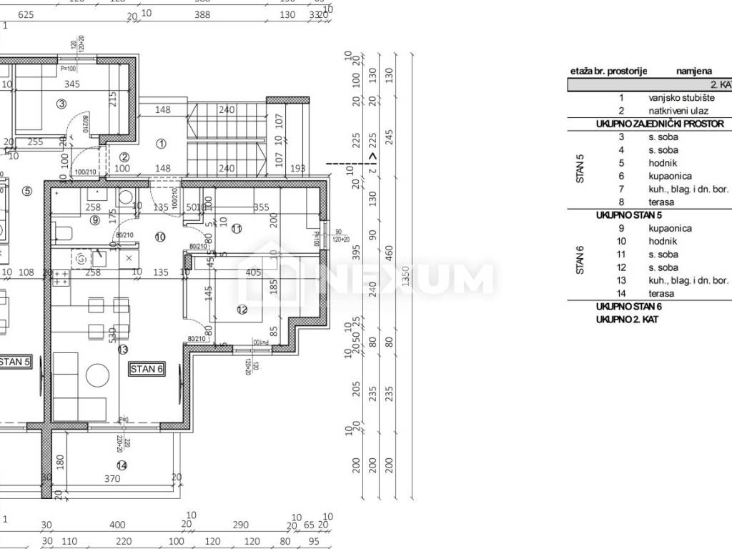 A functional apartment with a total surface area of 53.10 m² is for sale, located on the first floor of a residential building in Trogir. The apartment consists of two bedrooms, a bathroom, a living room connected to the kitchen and dining area, and a terrace, ideal for relaxation.