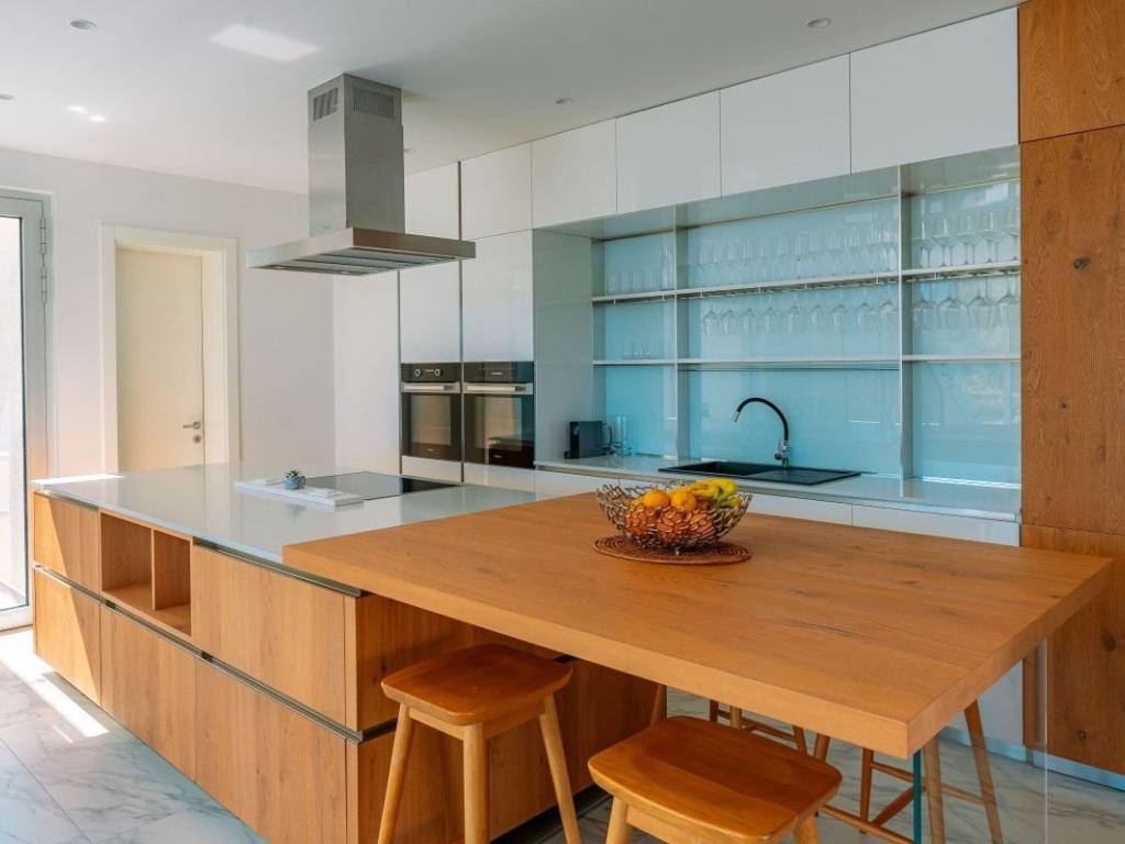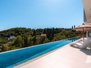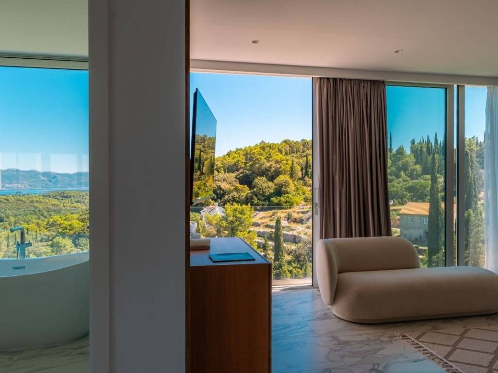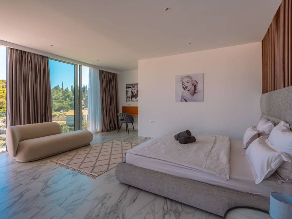 Situated in a peaceful area just outside the town of Korčula, this contemporary villa features clean modern lines and a refined minimalist interior and exterior design. The property offers beautiful open views of the town of Korčula, Badija Islet, and the surrounding greenery, creating a sense of privacy and harmony with nature.   The villa is set on a 510 m² plot and provides a total gross area of 360 m², spread over four levels. The layout has been carefully designed to emphasize functionality, comfort, and an abundance of natural light, with open views from most indoor and outdoor spaces.   The basement includes a garage for two vehicles and service rooms. The semi-basement level features a wellness area with a sauna and gym, a laundry room, and technical facilities. The ground floor comprises a spacious open-plan living area with a kitchen and dining room, opening onto a large terrace with an infinity pool, along with three bedrooms, each with its own en-suite bathroom. The entire first floor is dedicated to a generous master bedroom with a private bathroom and terrace.   The villa is equipped with underfloor heating throughout, heat pumps for heating and cooling, a solar photovoltaic system, and electric vehicle charging stations in the garage. Additional high-end features include aluminum joinery with triple-glazed windows, blackout curtains in the bedrooms, premium ceramic finishes, and a Smart Home system. The outdoor area is landscaped with Mediterranean plants and includes an outdoor barbecue, while the northeast orientation provides natural protection from strong sunlight and ensures a comfortable climate year-round.   In addition to the garage, two outdoor parking spaces are available. The villa holds an A+ energy certificate, is fully furnished, and comes with valid building and occupancy permits, as well as clear ownership documentation. The seller is a legal entity, and VAT is added to the purchase price.   Another villa of the same project is located on the site, offering the possibility to purchase one or both properties. The property is 1,5 km from the sea and Žrnovska Banja beach, and 3 km from the historic old town of Korčula.